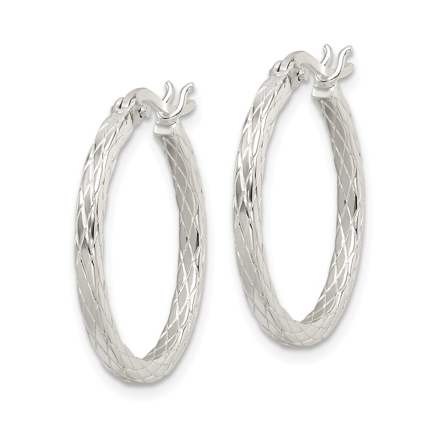 Perfect For Those Who Appreciate Timeless Appeal These Women's Classic Silver Hoops Pair Beautifully With Both Formal And Casual Styles. The Smooth Curves And Detailed Silver Diamond Cut Texture Offer A Balanced Mix Of Modern Design And Traditional Elegance. From Office Styles To Evening Outings These Silver Round Hoops Are A Must-Have For Versatile Silver Fashion Jewelry. Enjoy The Confidence Of Wearing Refined Hoop Earrings That Speak To Your Polished Taste.
