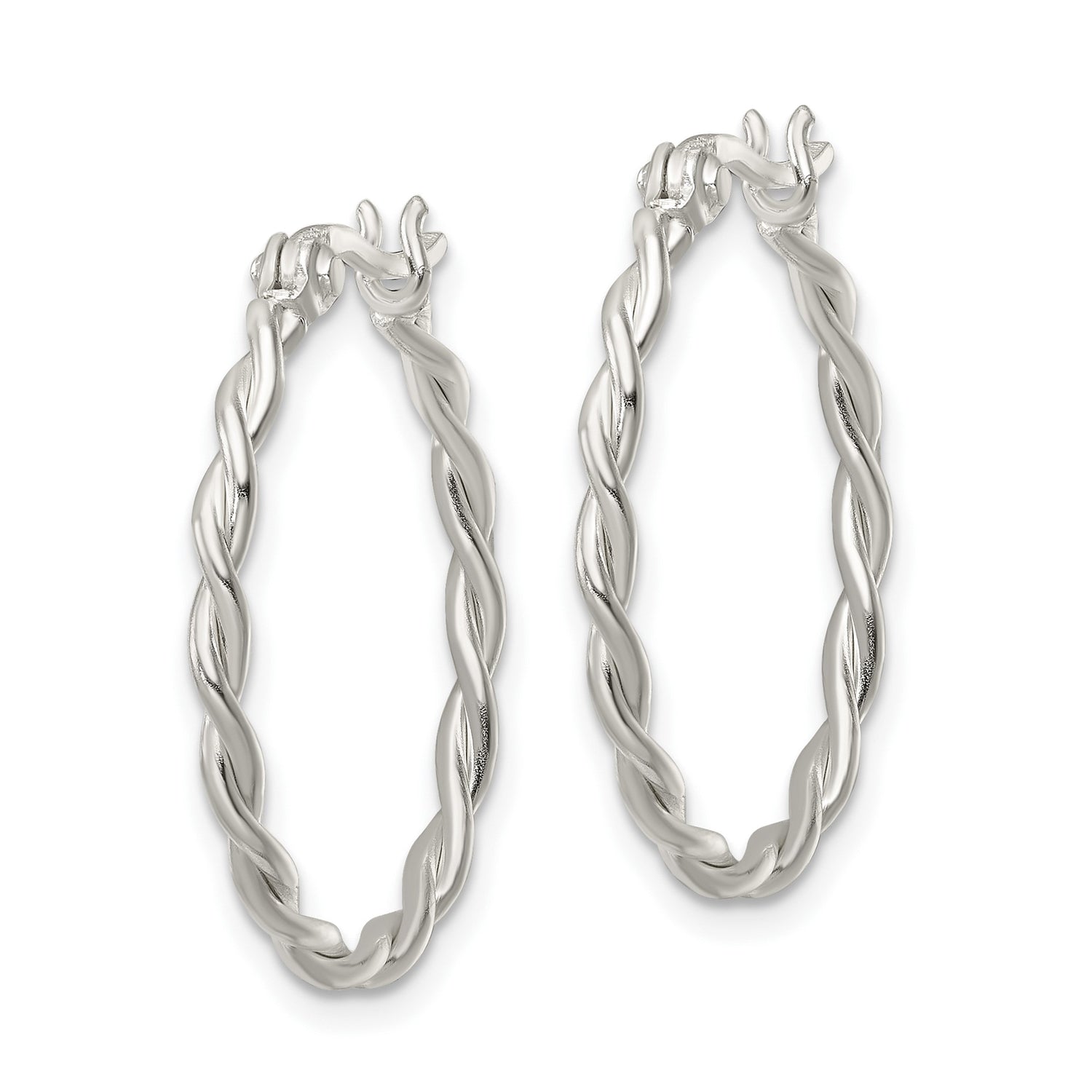 Sterling Silver Twisted Hoop Earrings with Braided Rope Design and Polished Finish