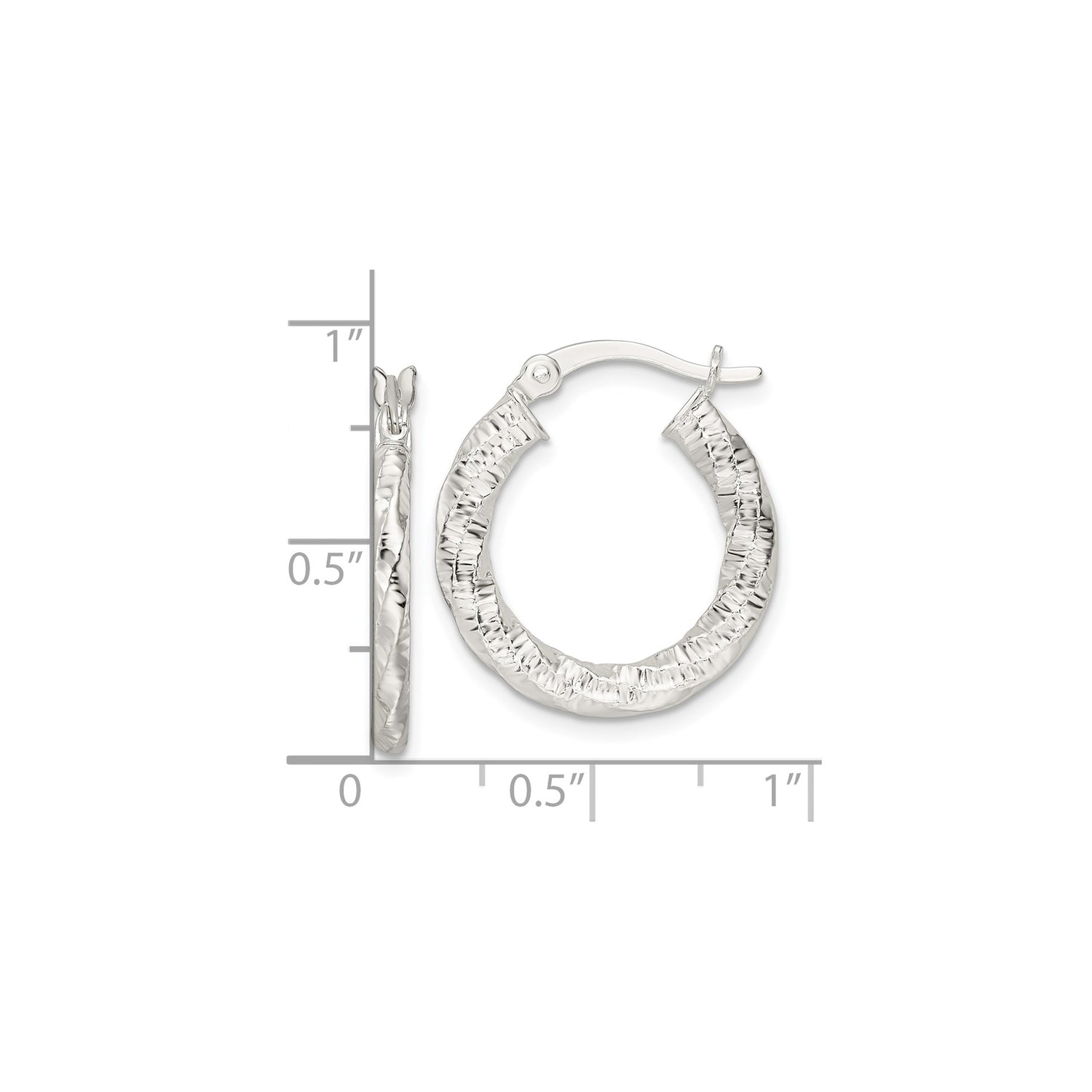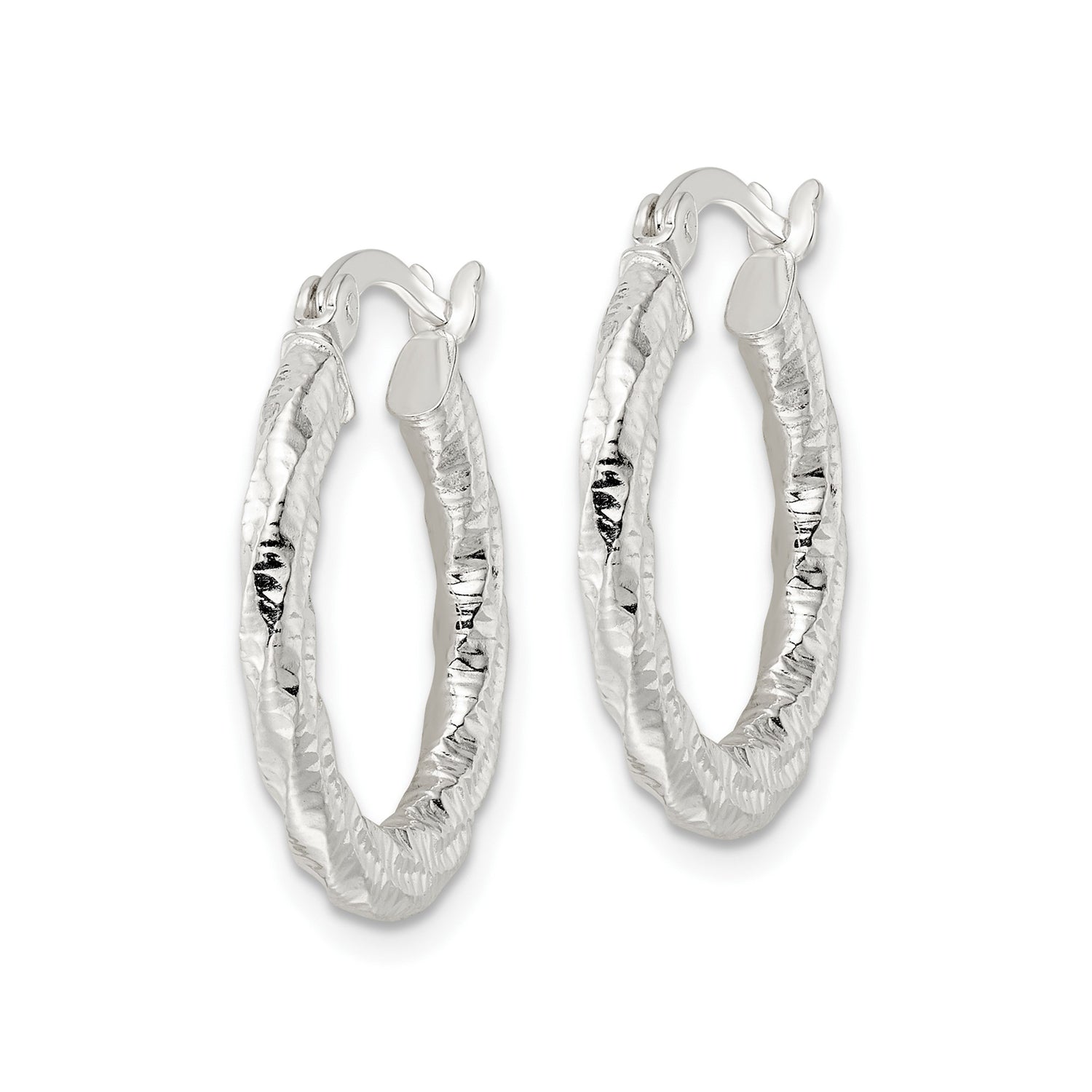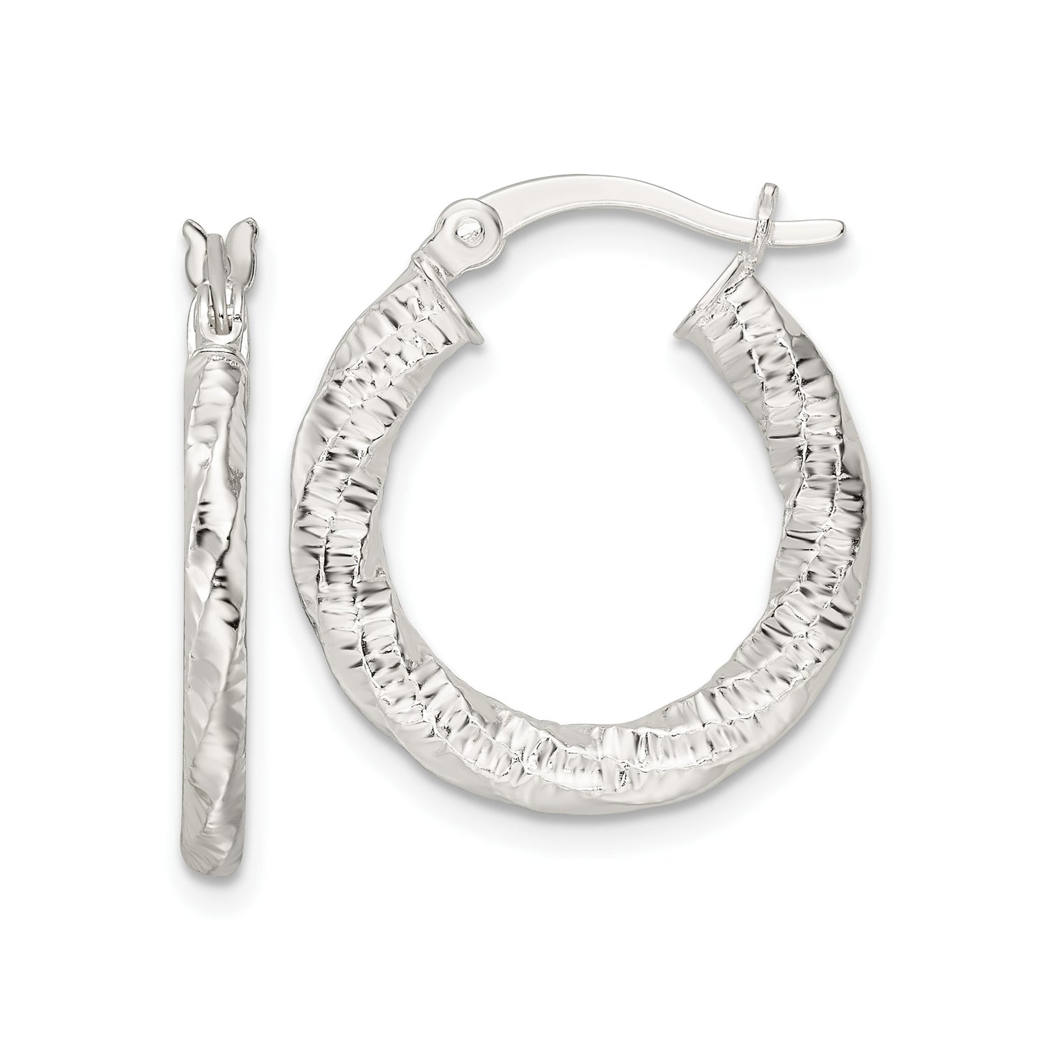 Sterling Silver Twisted Hoop Earrings with Hammered Textured Finish, Lightweight Round Design