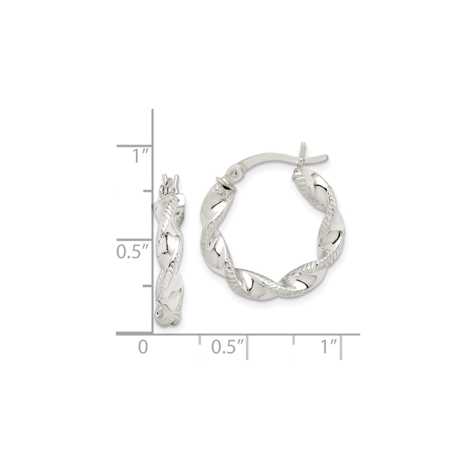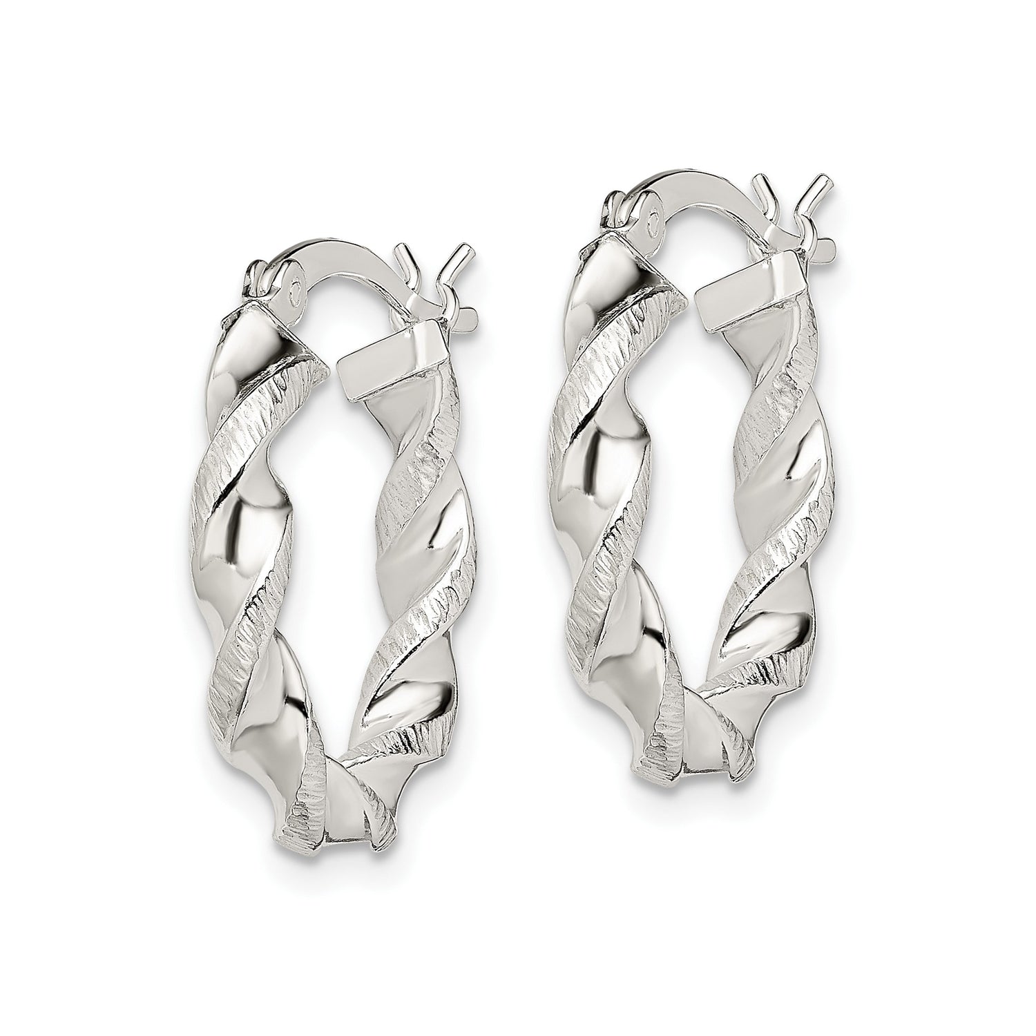 Sterling Silver Twisted Hoop Earrings with Polished and Textured Rope Design