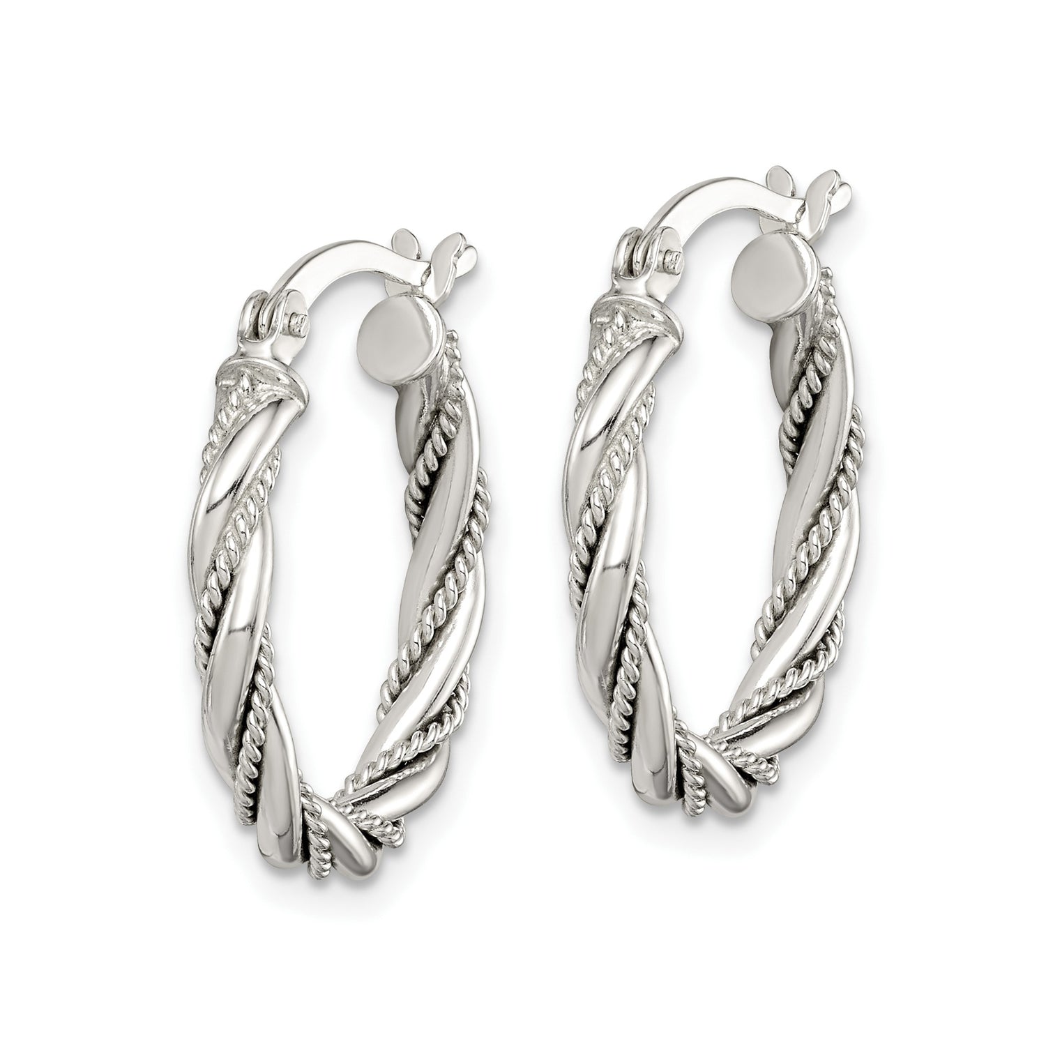 Sterling Silver Twisted Hoop Earrings with Polished Braid and Rope Detail for Women