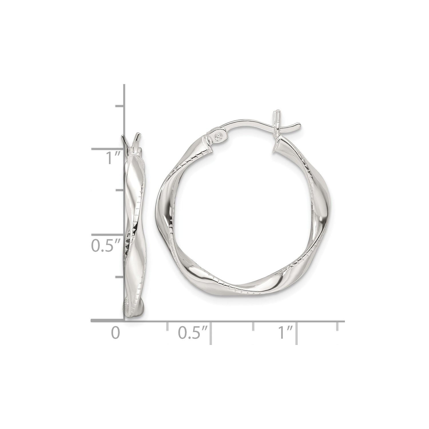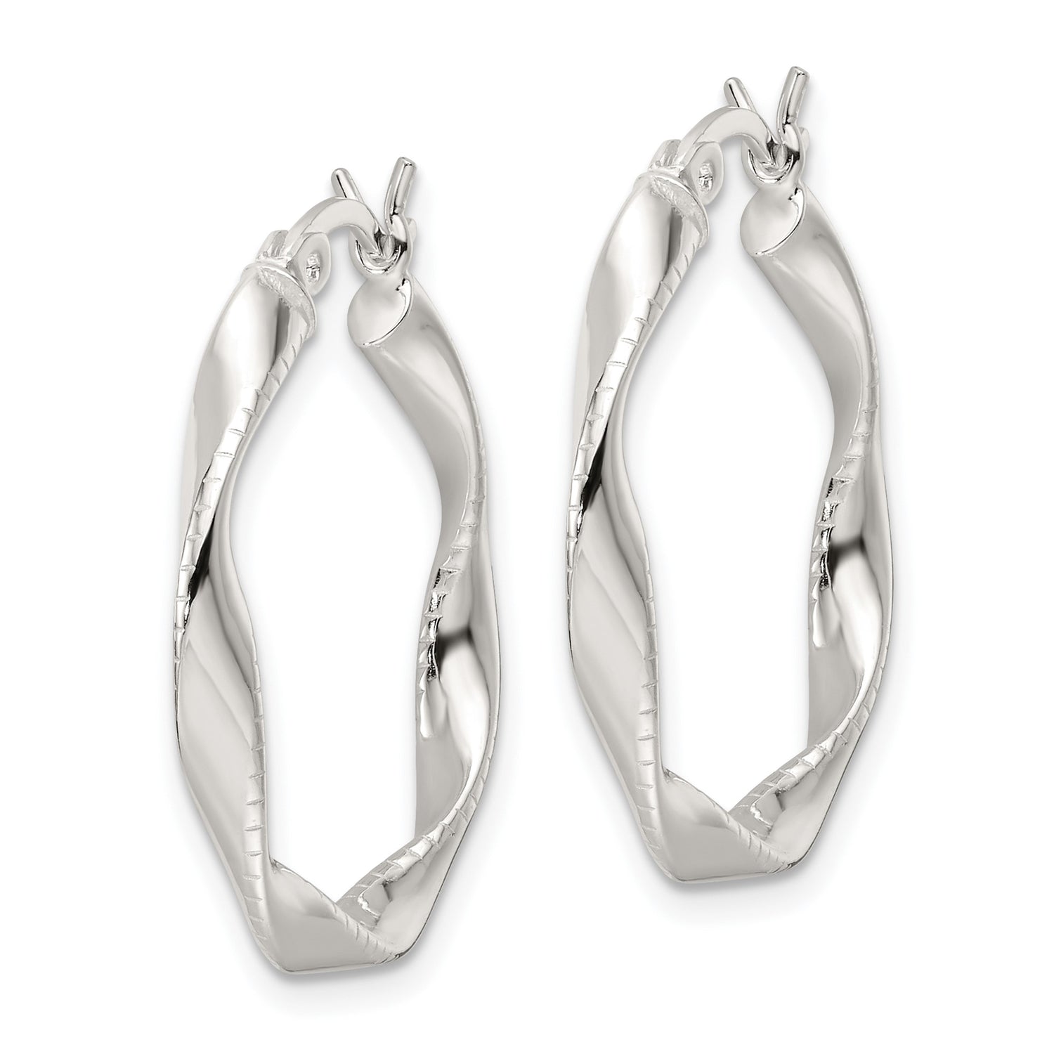 Sterling Silver Twisted Hoop Earrings with Ridged Texture and High Polish Finish