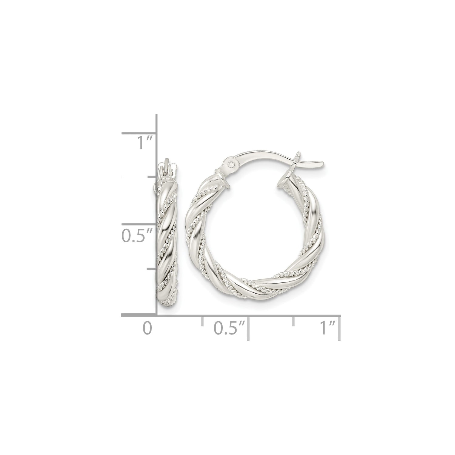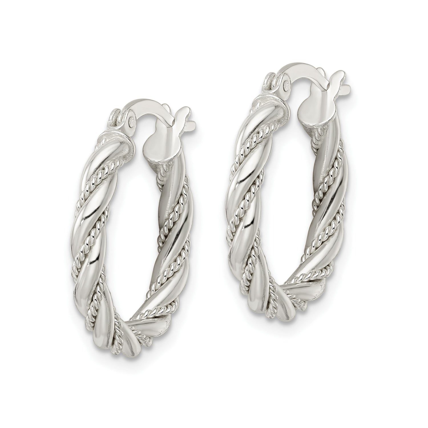 Sterling Silver Twisted Rope Hoop Earrings with Polished and Textured Braided Design