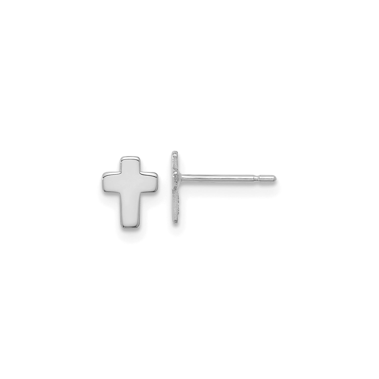 14k White Gold Cross Stud Earrings, Simple Christian Jewelry for Women