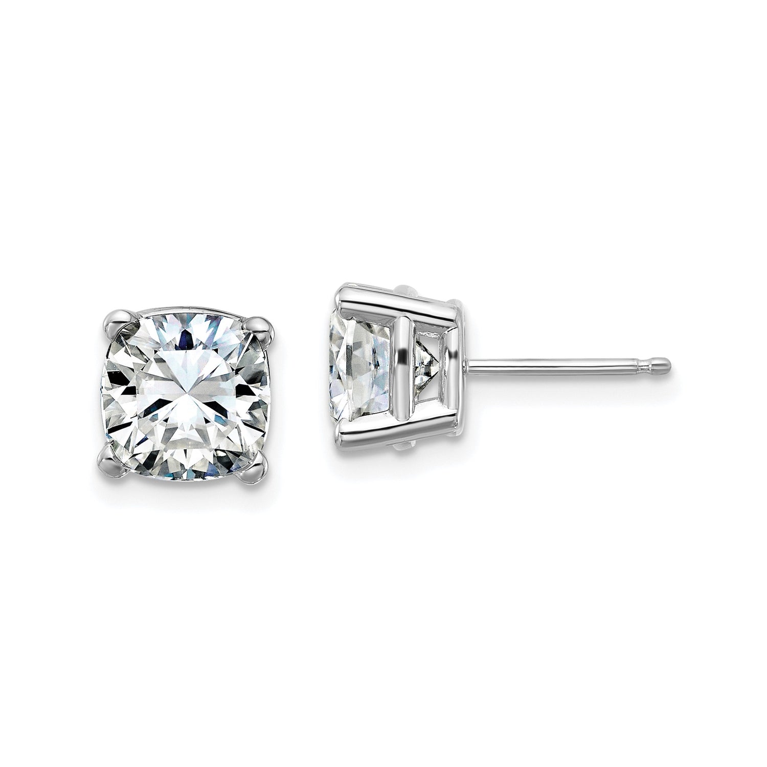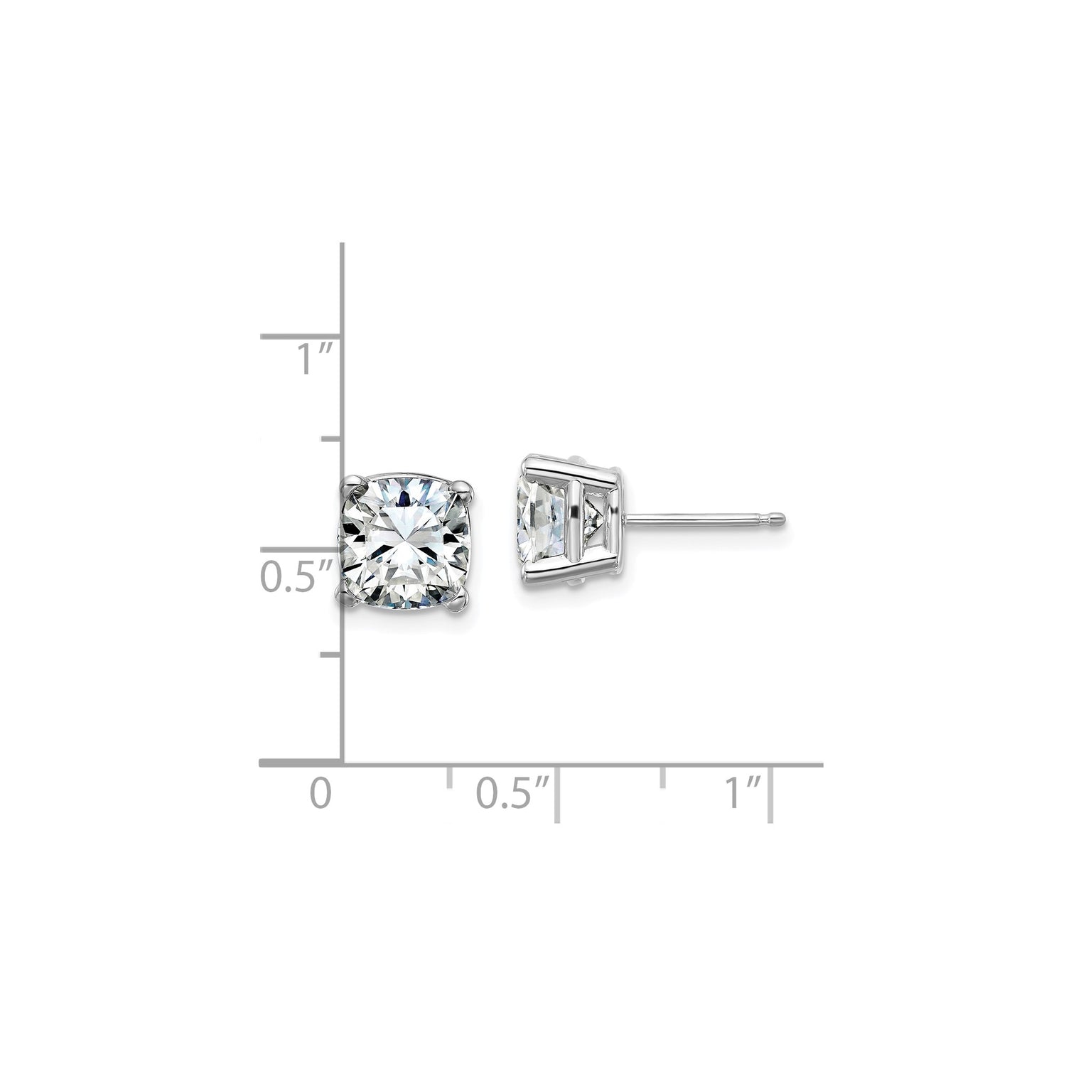 14k White Gold Cushion Cut Stud Earrings with Moissanite, Four Prong Solitaire Design