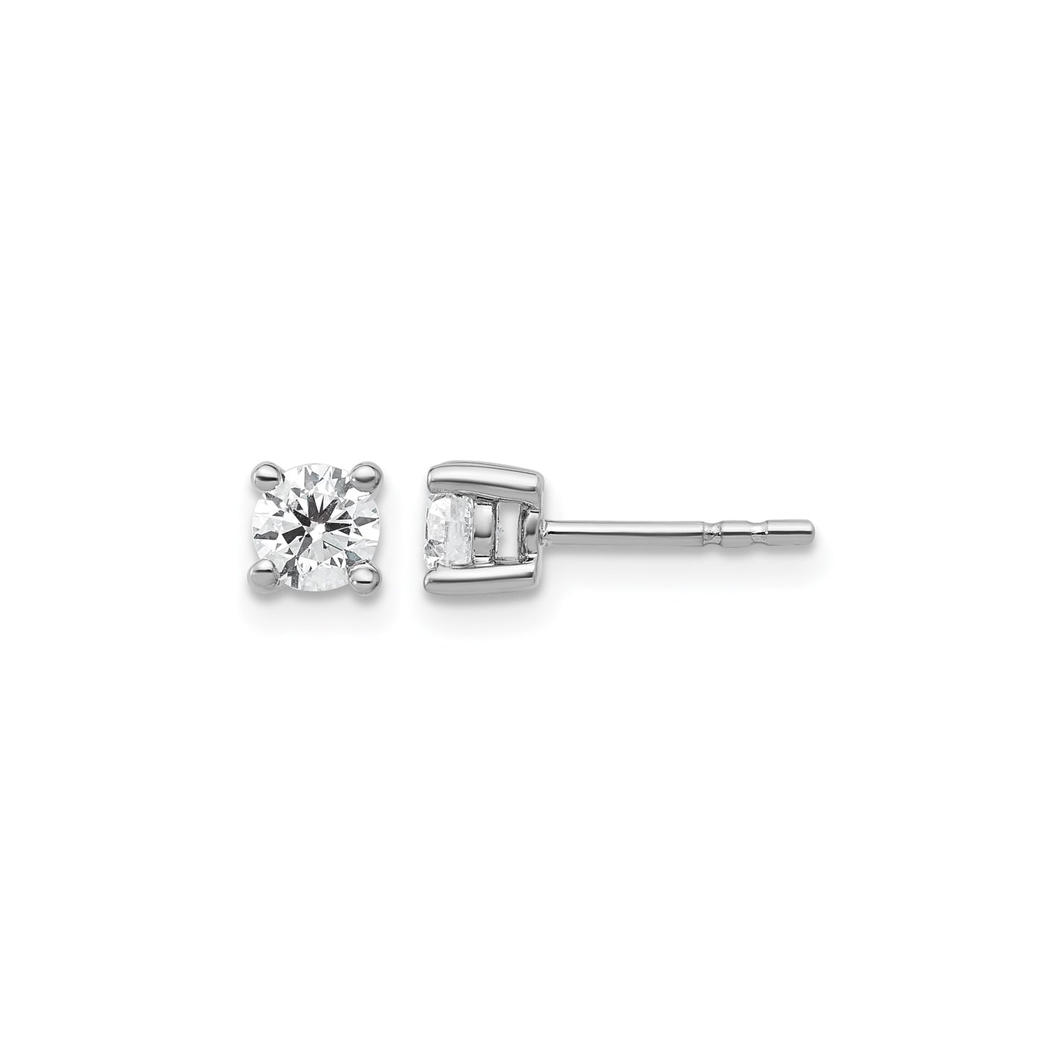 14k White Gold Diamond Stud Earrings, Round Lab Grown, Four Prong Setting, Classic Minimalist Design