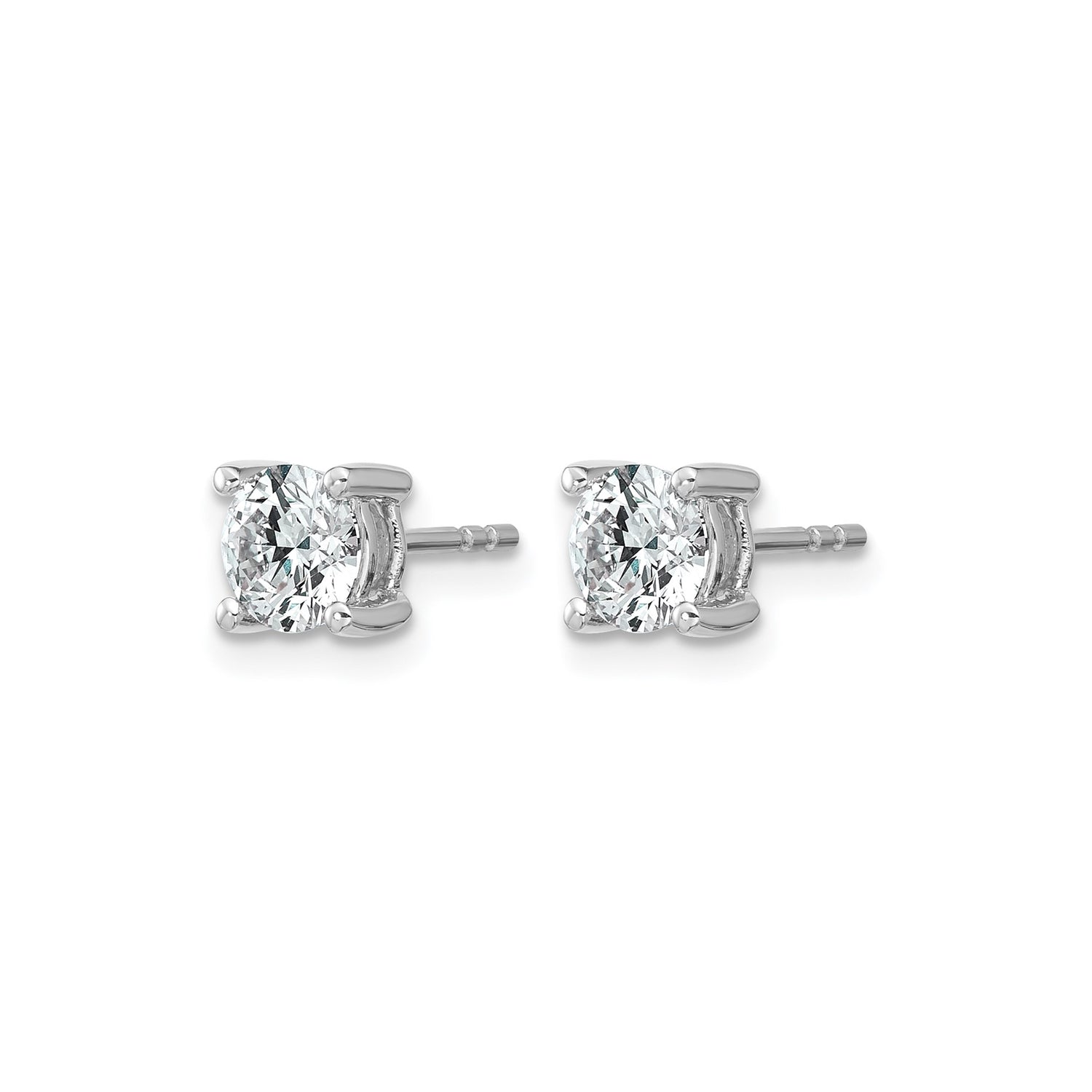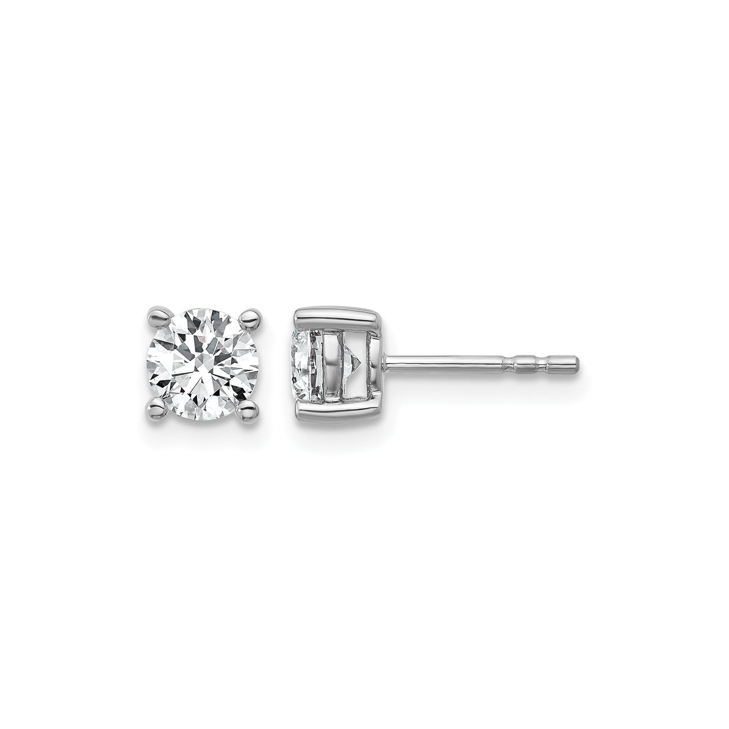 14k White Gold Solitaire Stud Earrings with Round Clear Gemstone, Classic Timeless Design