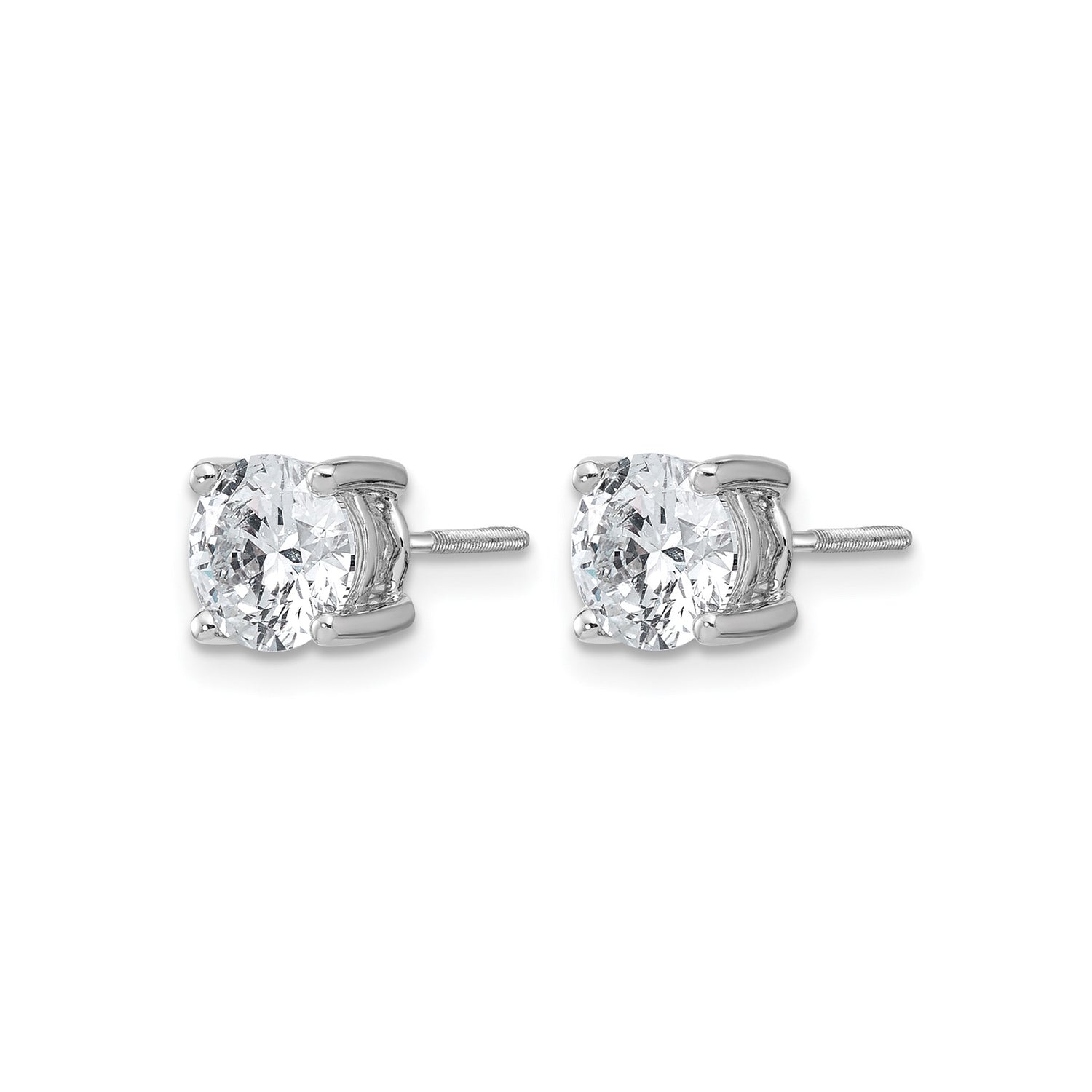 14k White Gold Solitaire Stud Earrings with Round Cut Clear Gemstones, Screw Back Design