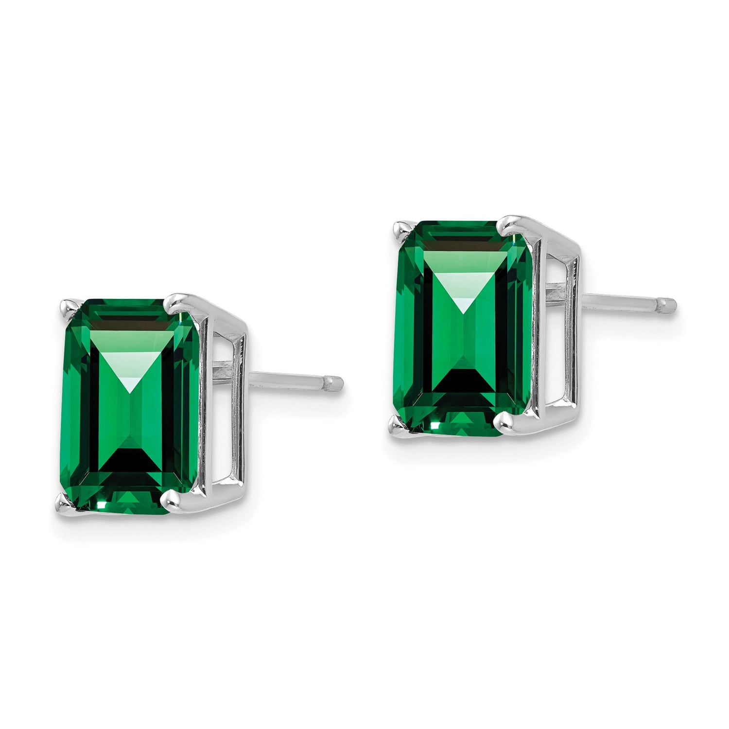 14k White Gold Stud Earrings with Emerald Cut Helenite, Classic Four Prong Setting