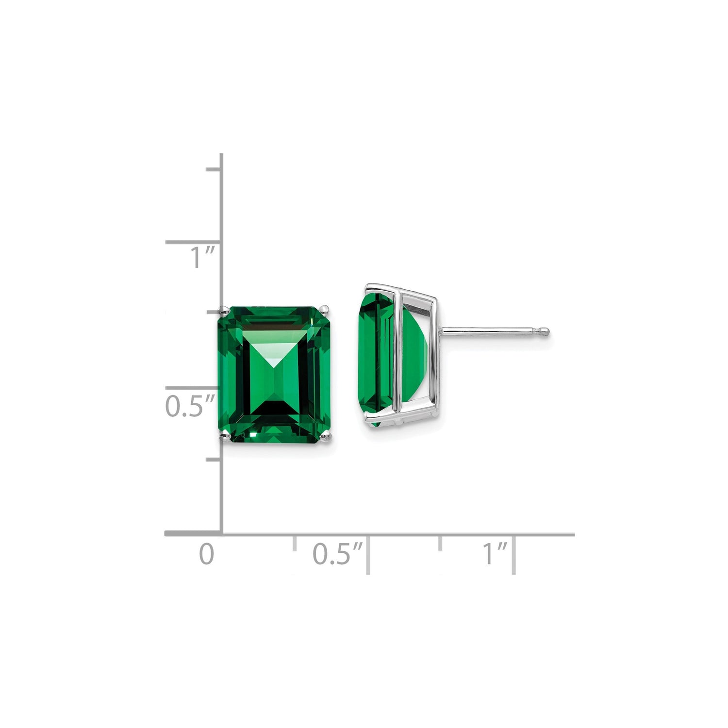 14k White Gold Stud Earrings with Emerald Cut Helenite, May Birthstone Style