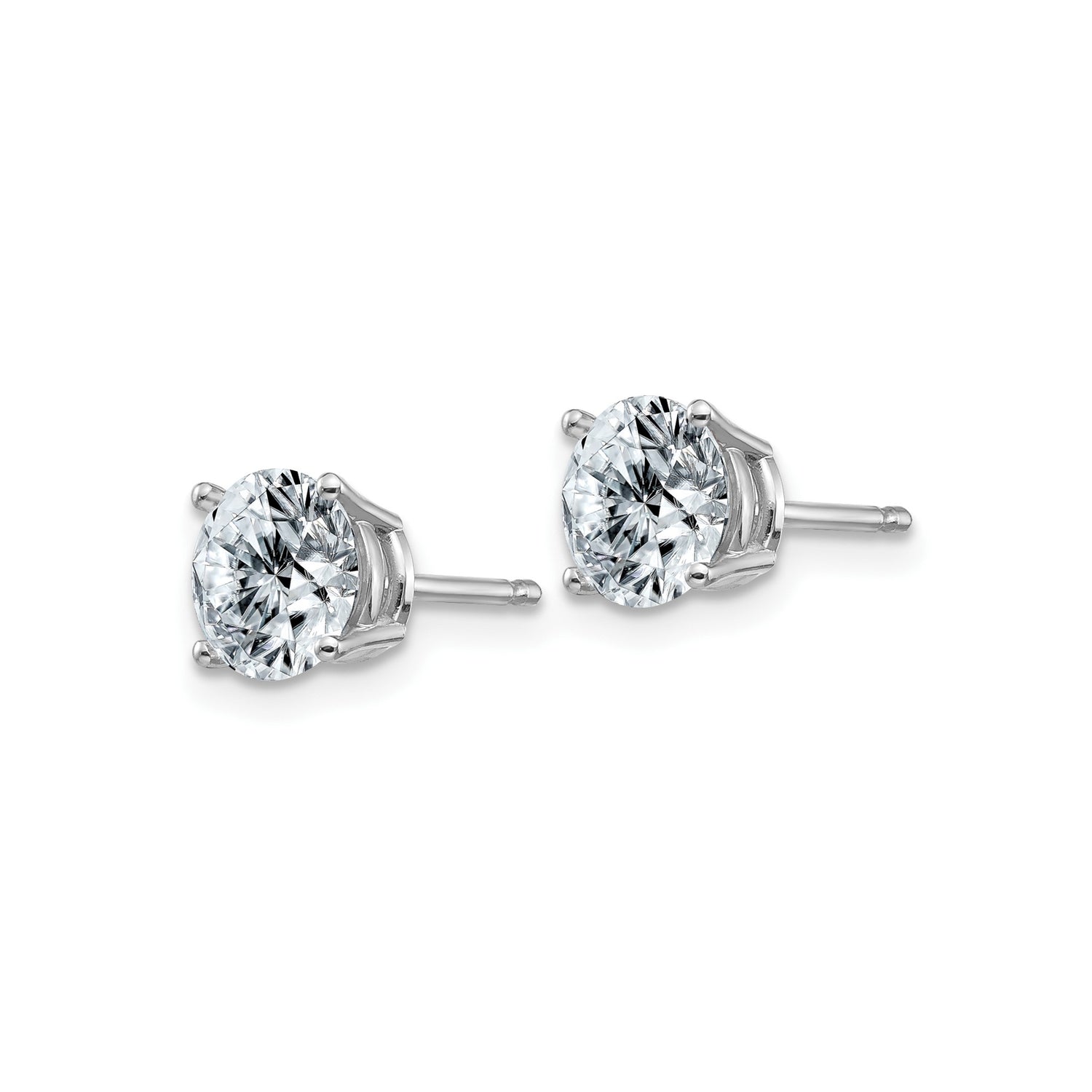14k White Gold Stud Earrings with Moissanite, Round Cut Solitaire, Classic Four Prong Setting