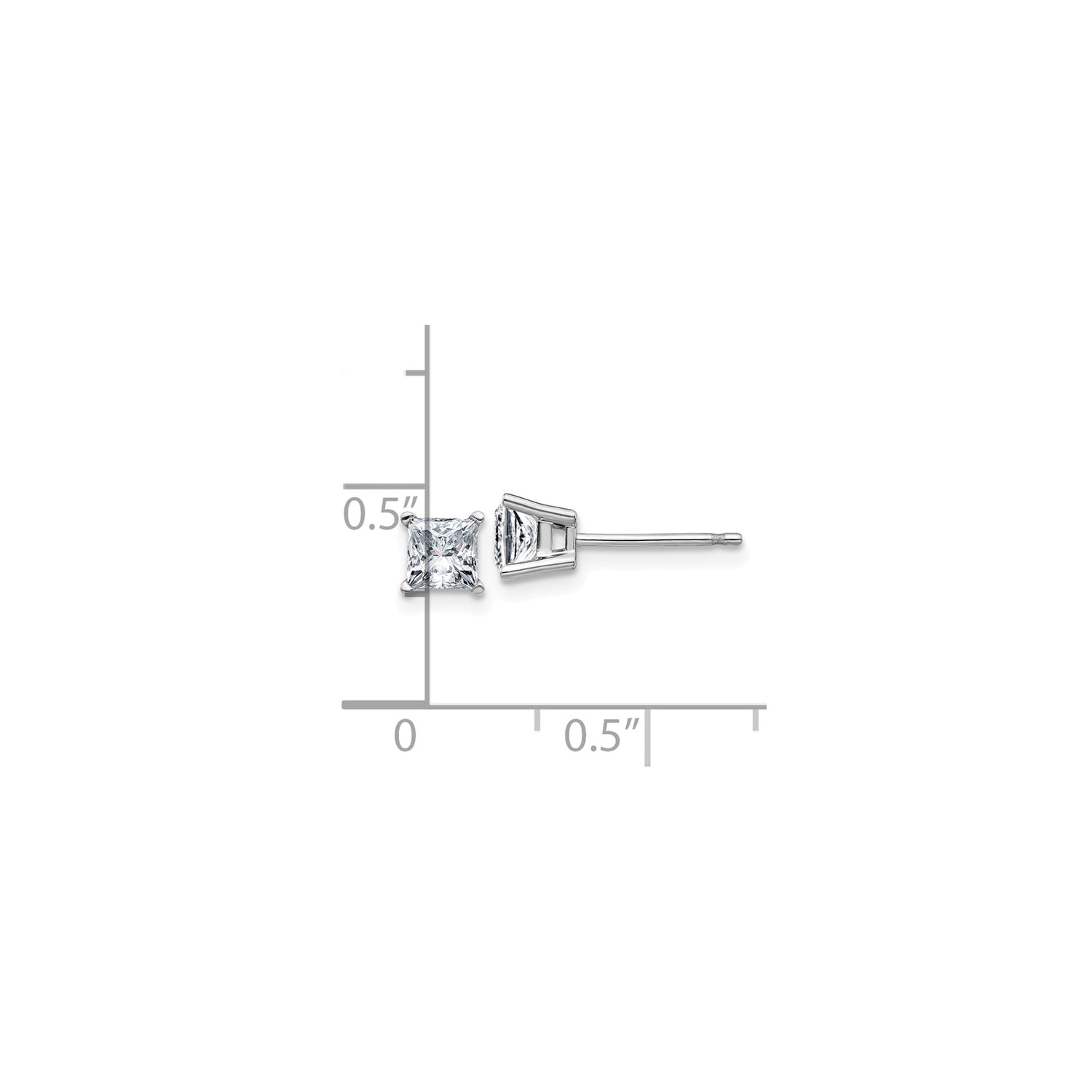 14k White Gold Stud Earrings with Princess Cut Moissanite, Classic Four Prong Solitaire Design