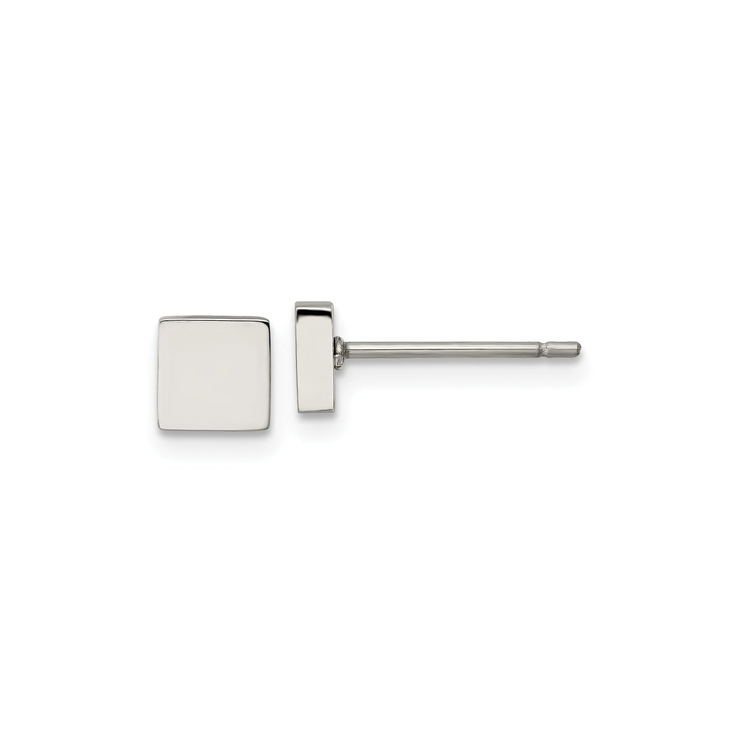 Stainless Steel Square Stud Earrings, Polished Minimalist Geometric Design, Unisex Hypoallergenic Style