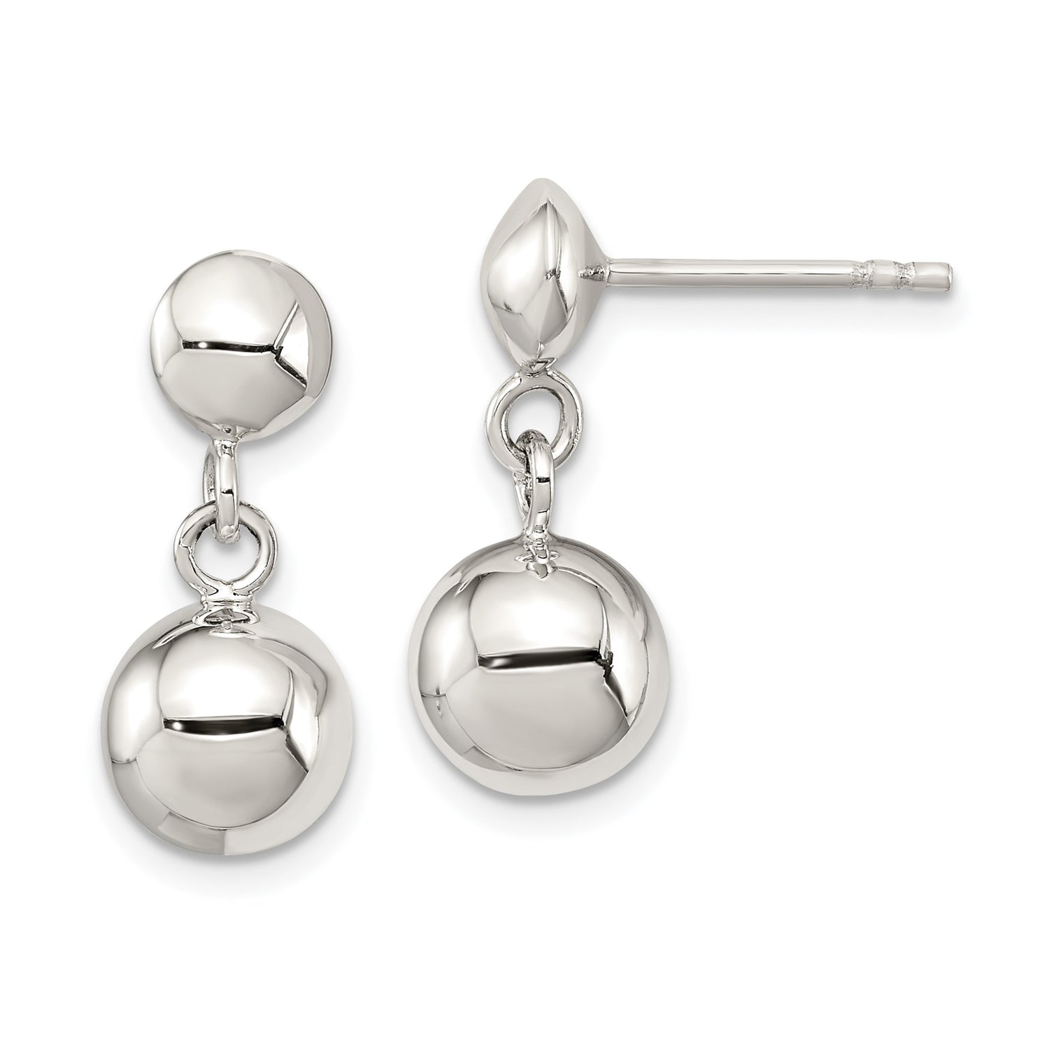 Sterling Silver Dangle Ball Stud Earrings with Polished Round Drop Charms, Minimalist Design for Women