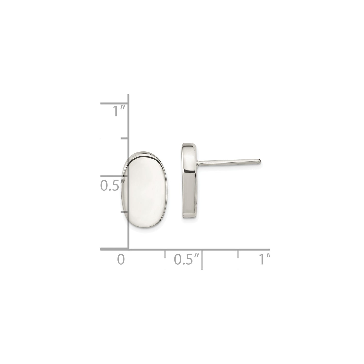Sterling Silver Oval Stud Earrings, Polished Minimalist Design, Unisex Modern Style