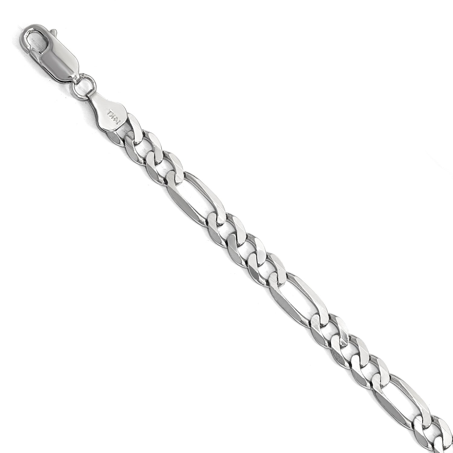 14K White Gold Figaro Chain Bracelet, 6 mm