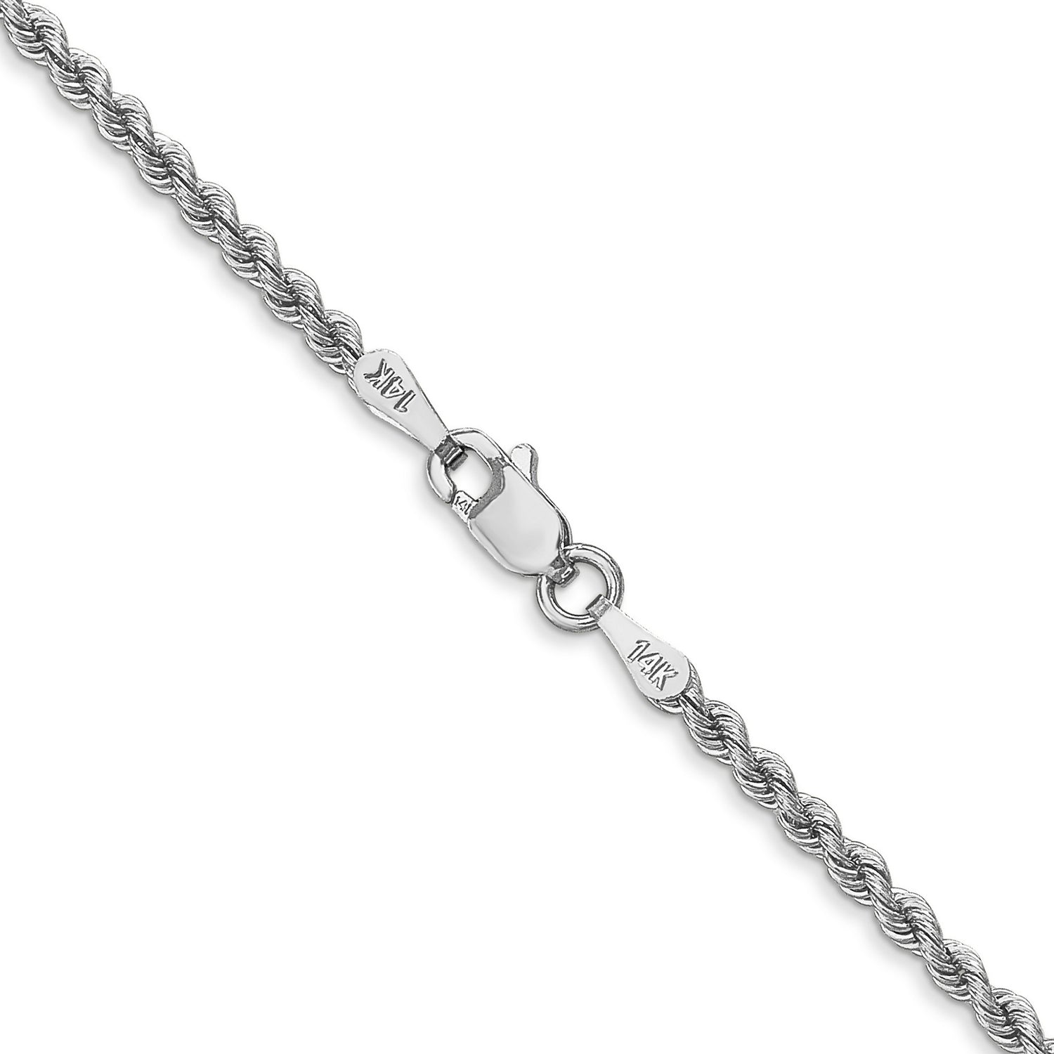 14K White Gold Rope Chain Necklace, 2.25 mm