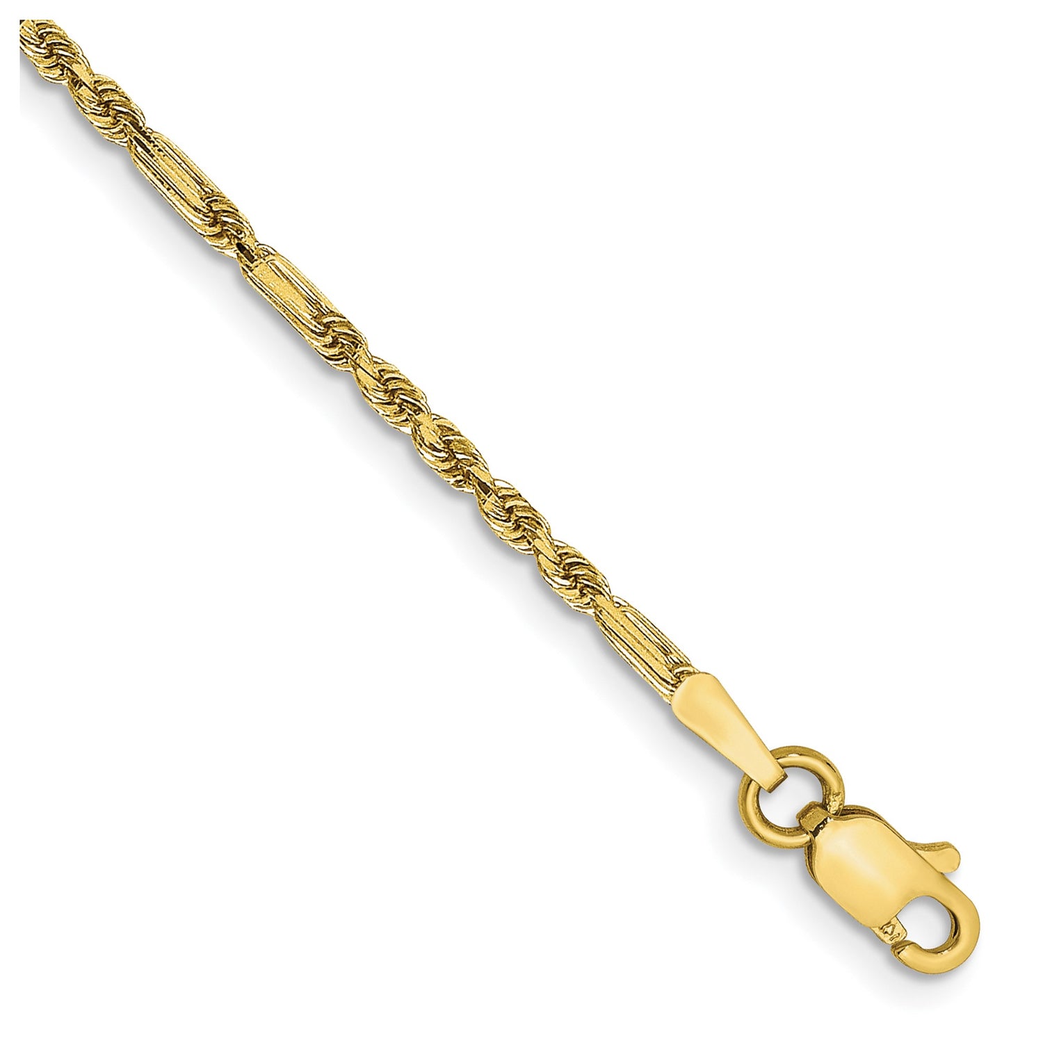 14K Yellow Gold Rope Chain Anklet, 1.8 mm