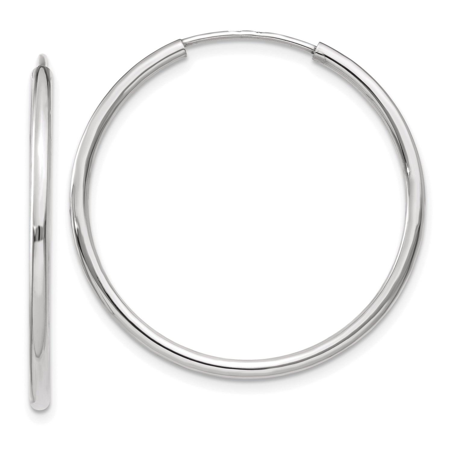 10k White Gold Hoop Earrings, Polished Finish, Classic Endless Round, Lightweight Minimalist Style