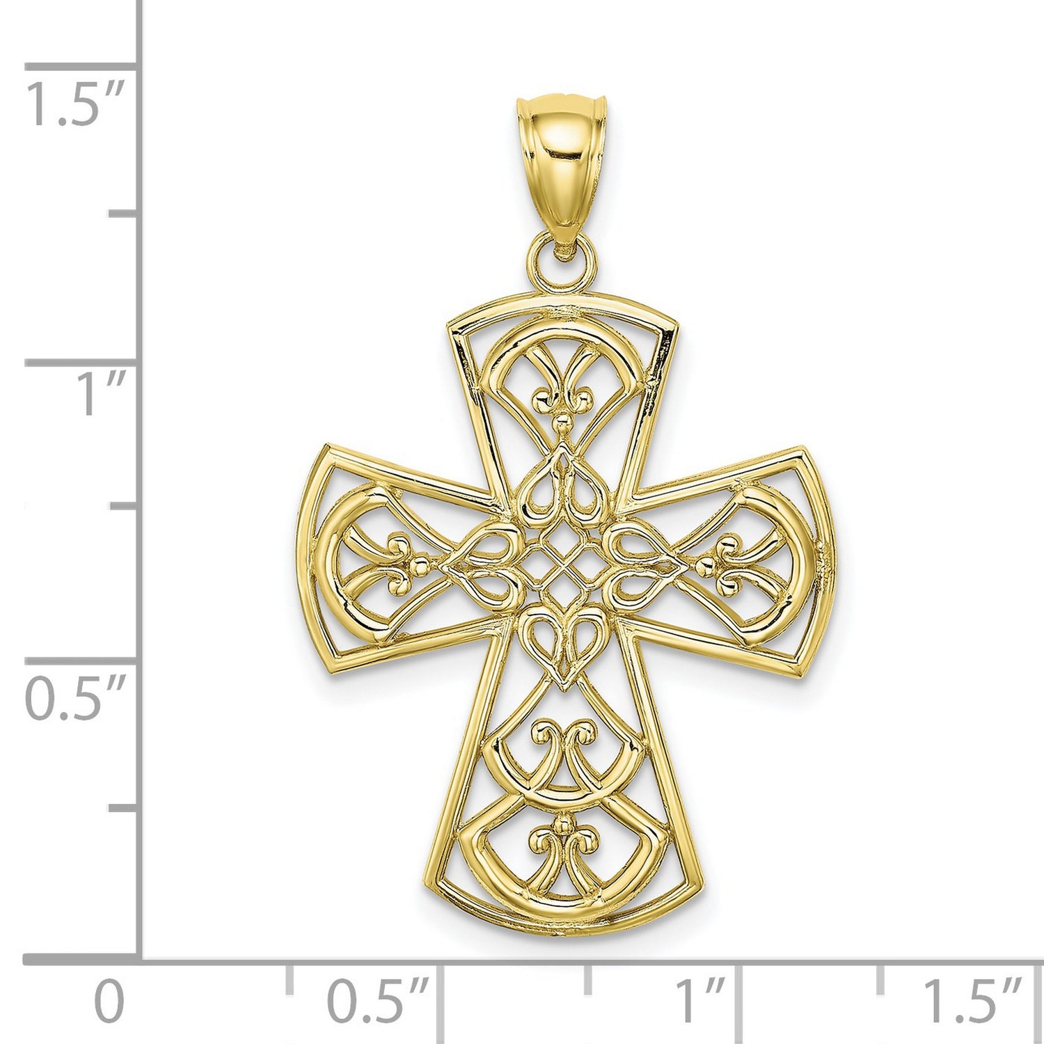Filigree Cross Charm Pendant in Real 10k Yellow Gold