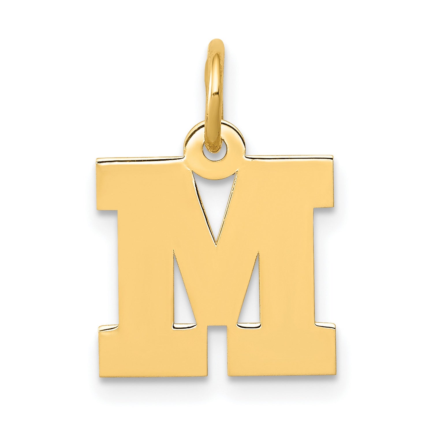 10k Yellow Gold Initial M Pendant, Bold Block Letter Charm, Unisex Alphabet Jewelry