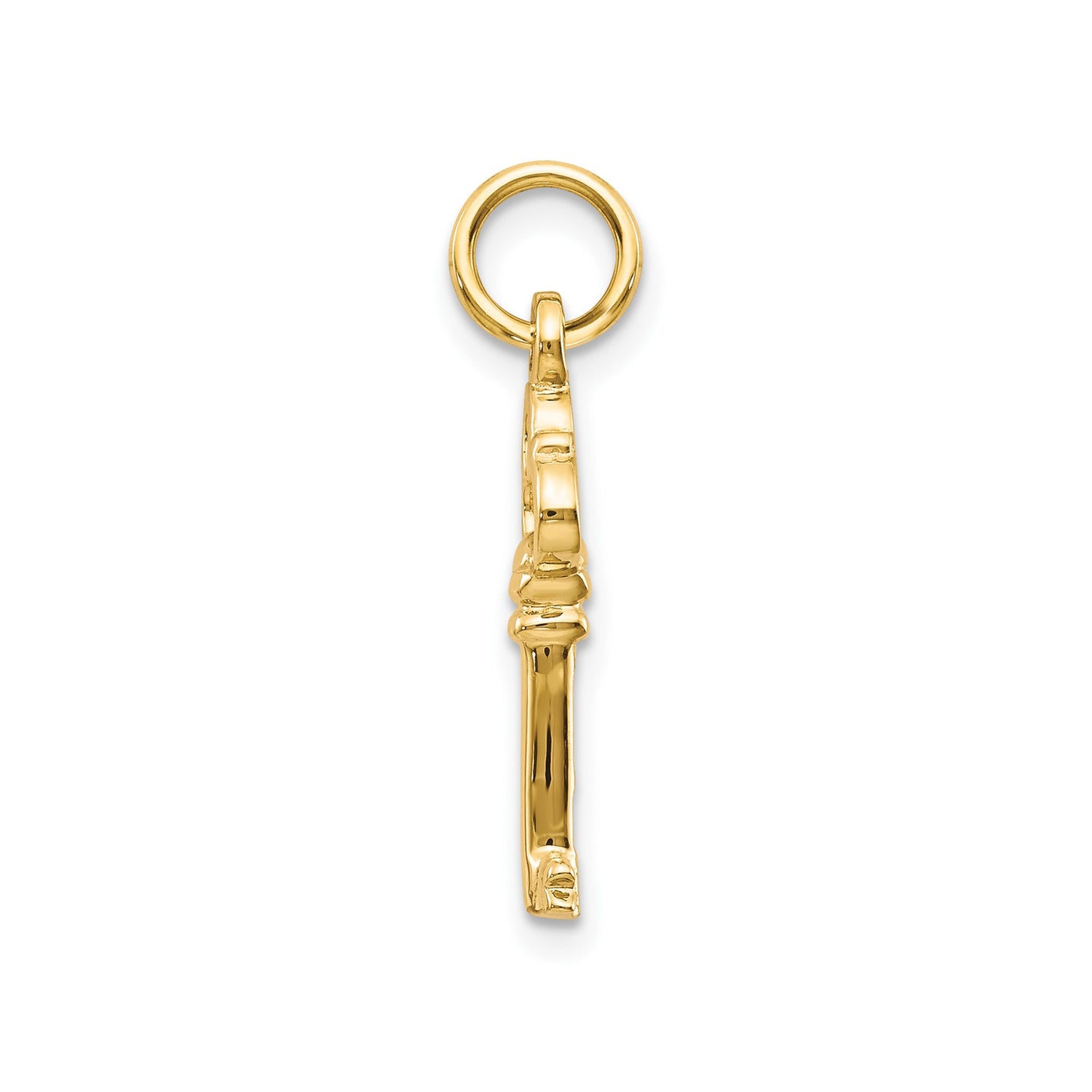 Unlock elegance with our Solid Key Charm Pendant crafted from real 10k yellow gold. This exquisite key-shaped pendant is a symbol of mystery and sophistication, ideal for those who appreciate the finer things in life. Its sleek design makes it a versatile addition to any jewelry collection, perfect for both casual and formal occasions.