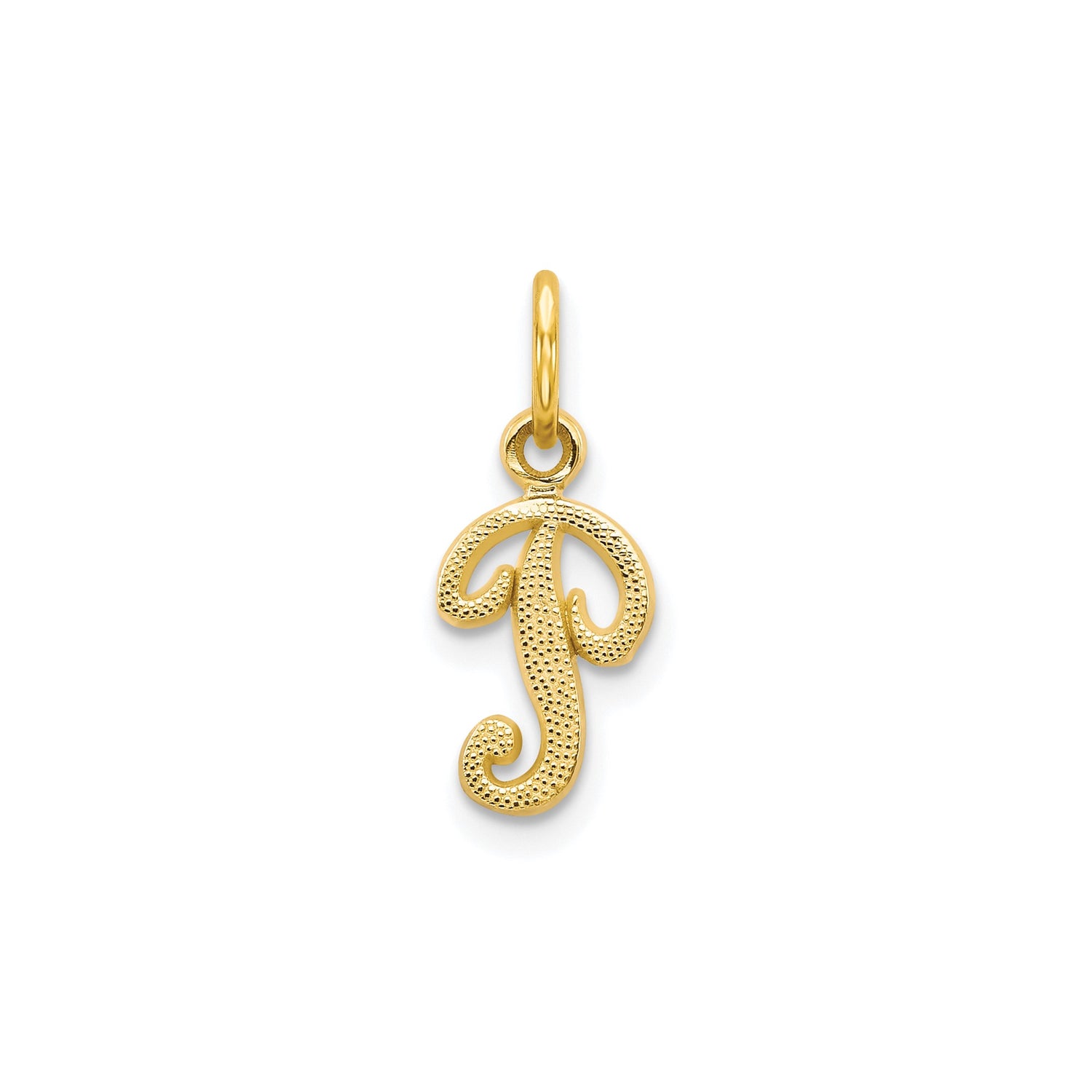10k Yellow Gold Letter J Pendant Charm, Script Monogram with Textured Finish for Women