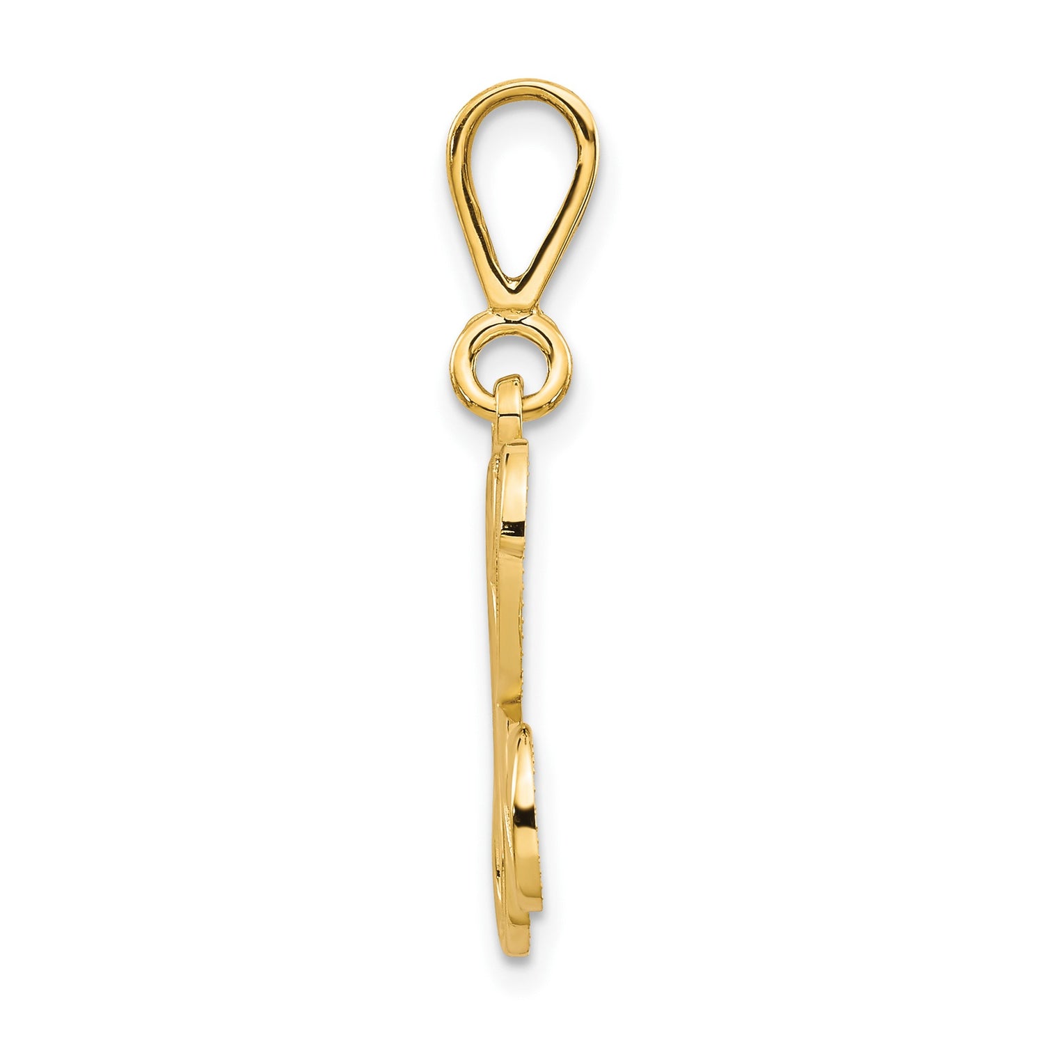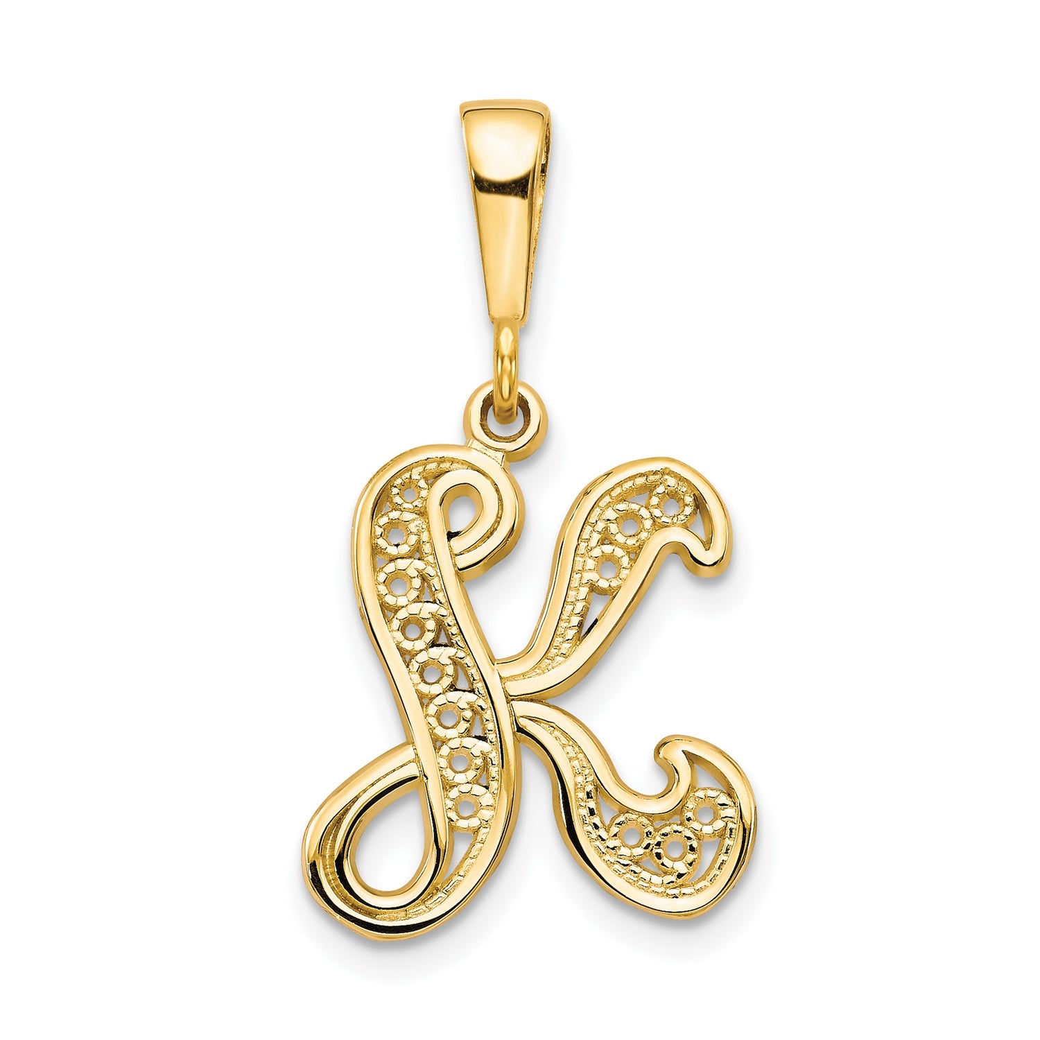 10k Yellow Gold Letter K Pendant, Script Initial Charm with Filigree Detailing, Polished Finish