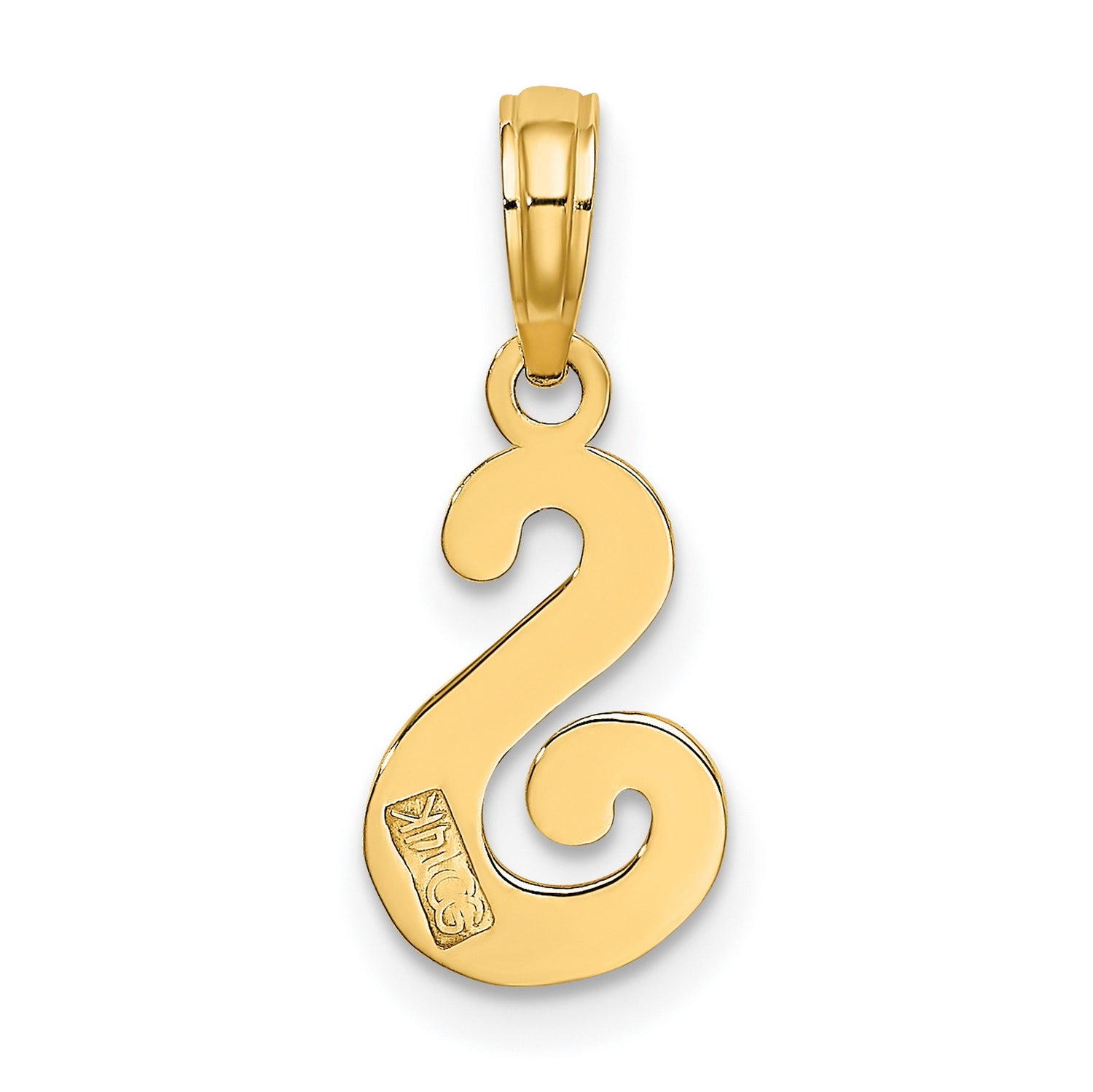 10k Yellow Gold Script S Initial Pendant, Polished Letter Charm for Women