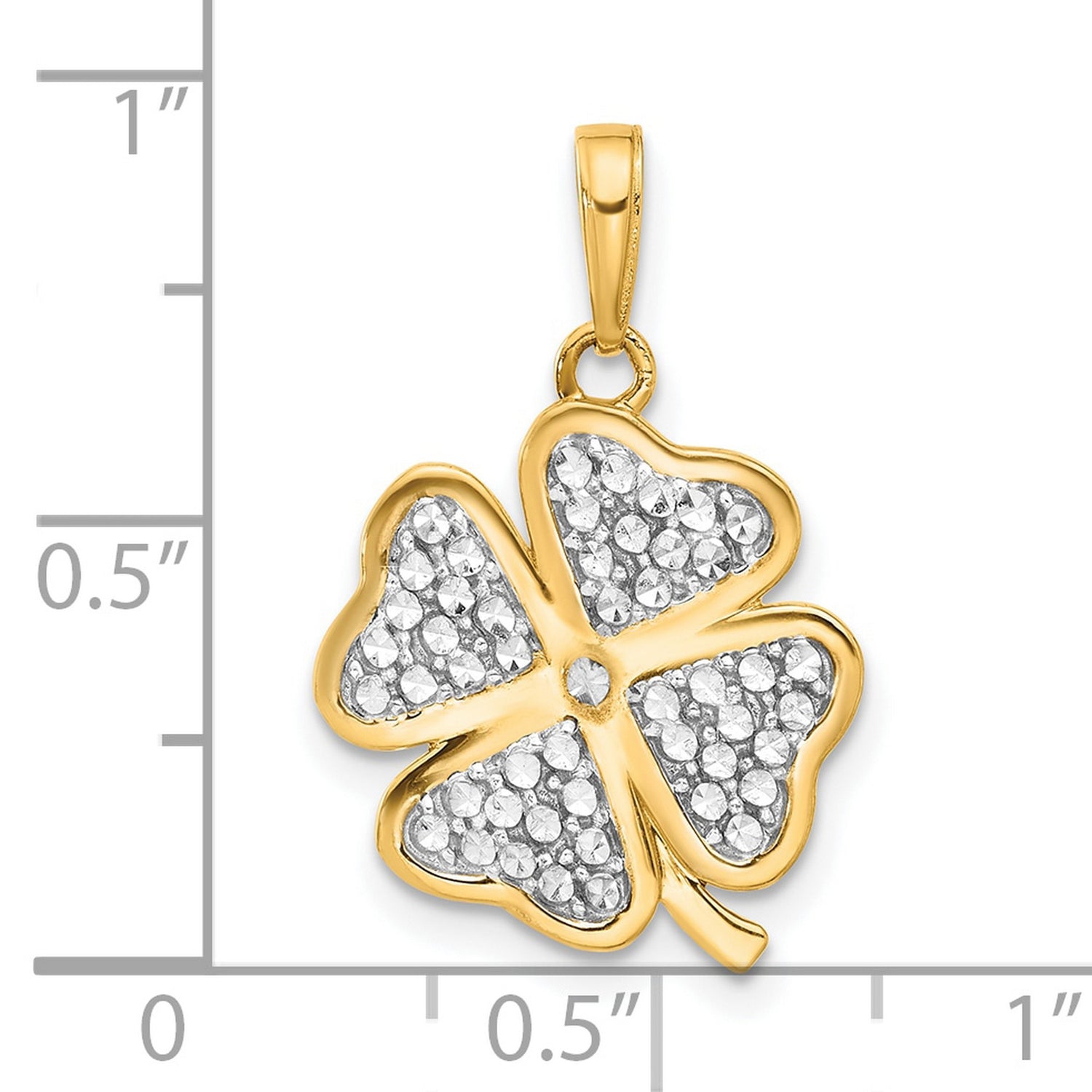 14k Multi-Tone Gold Four-Leaf Clover Pendant with Rhodium Accents, Irish Heritage Charm for Women