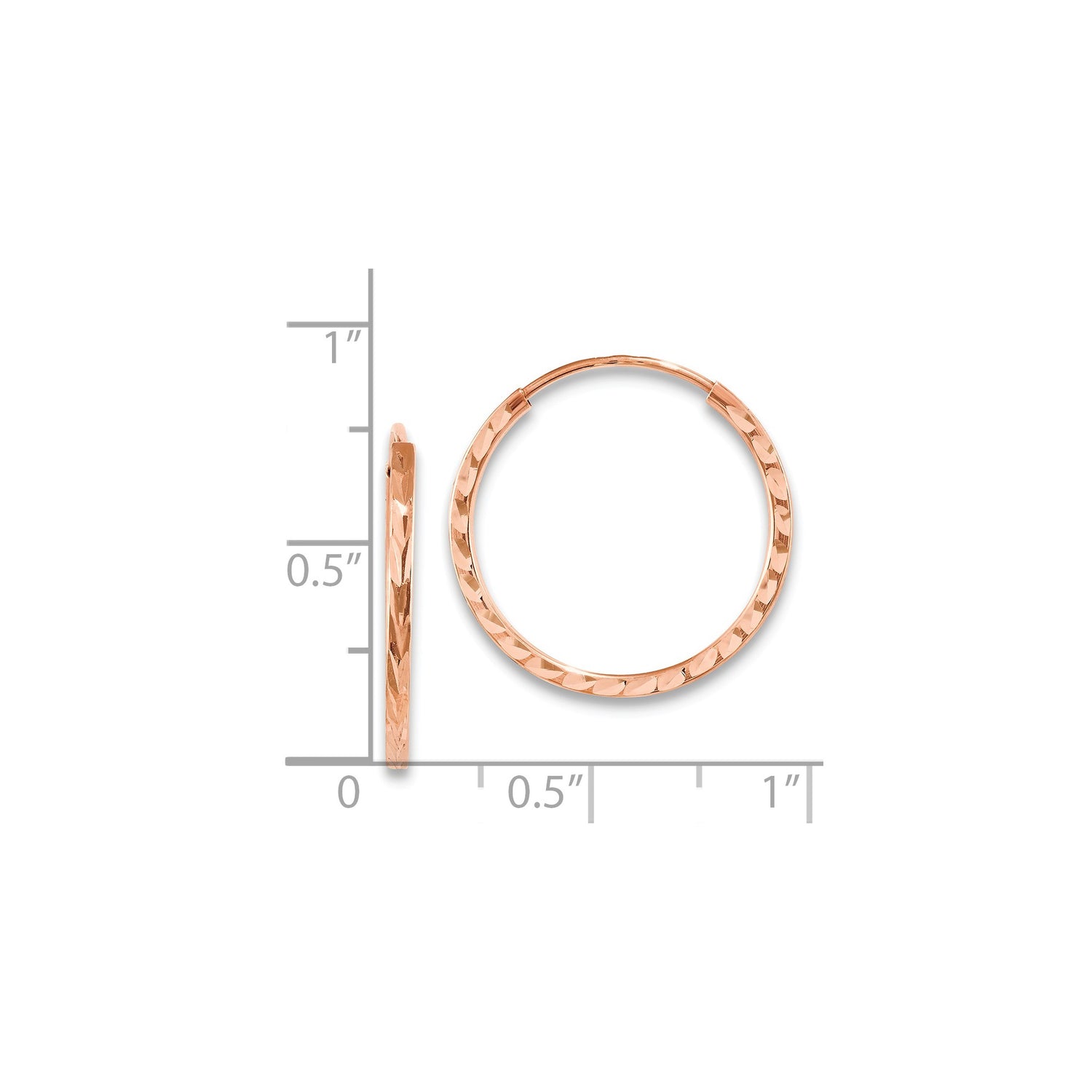 14k Rose Gold Hoop Earrings, Diamond Cut Textured Finish, Lightweight Polished Style
