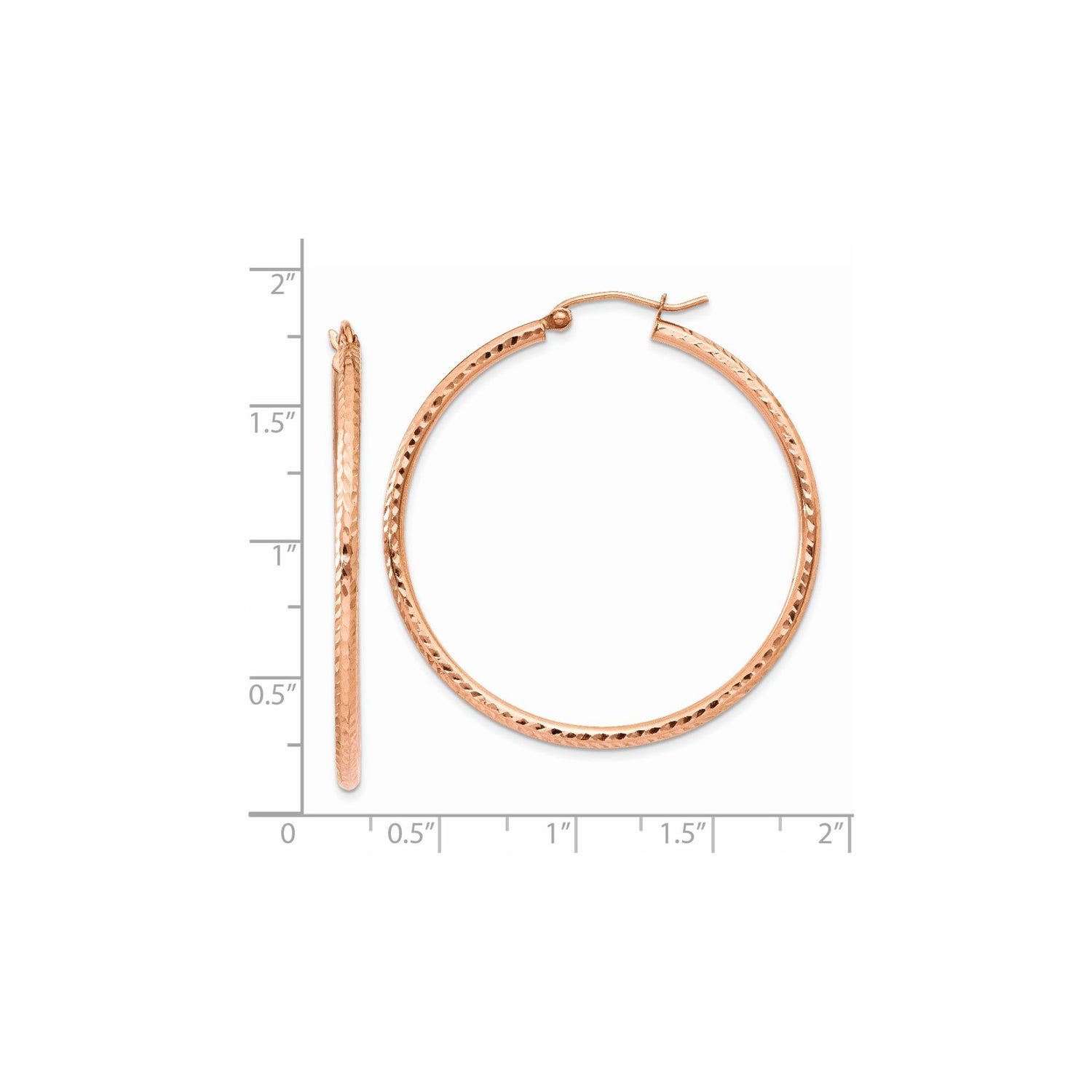 14k Rose Gold Hoop Earrings, Diamond Cut Textured Lightweight Polished Design