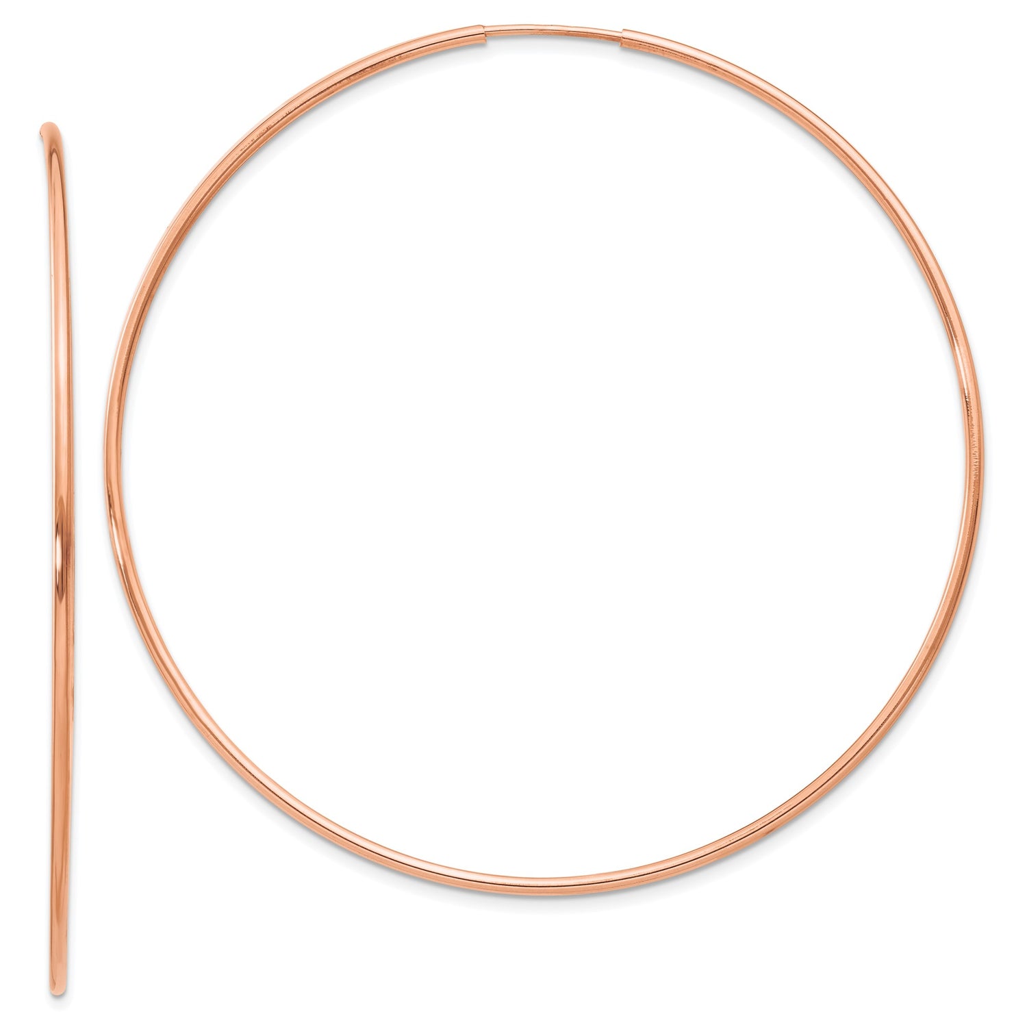 14k Rose Gold Hoop Earrings, Large Thin Polished Hoops in Minimalist Design for Women