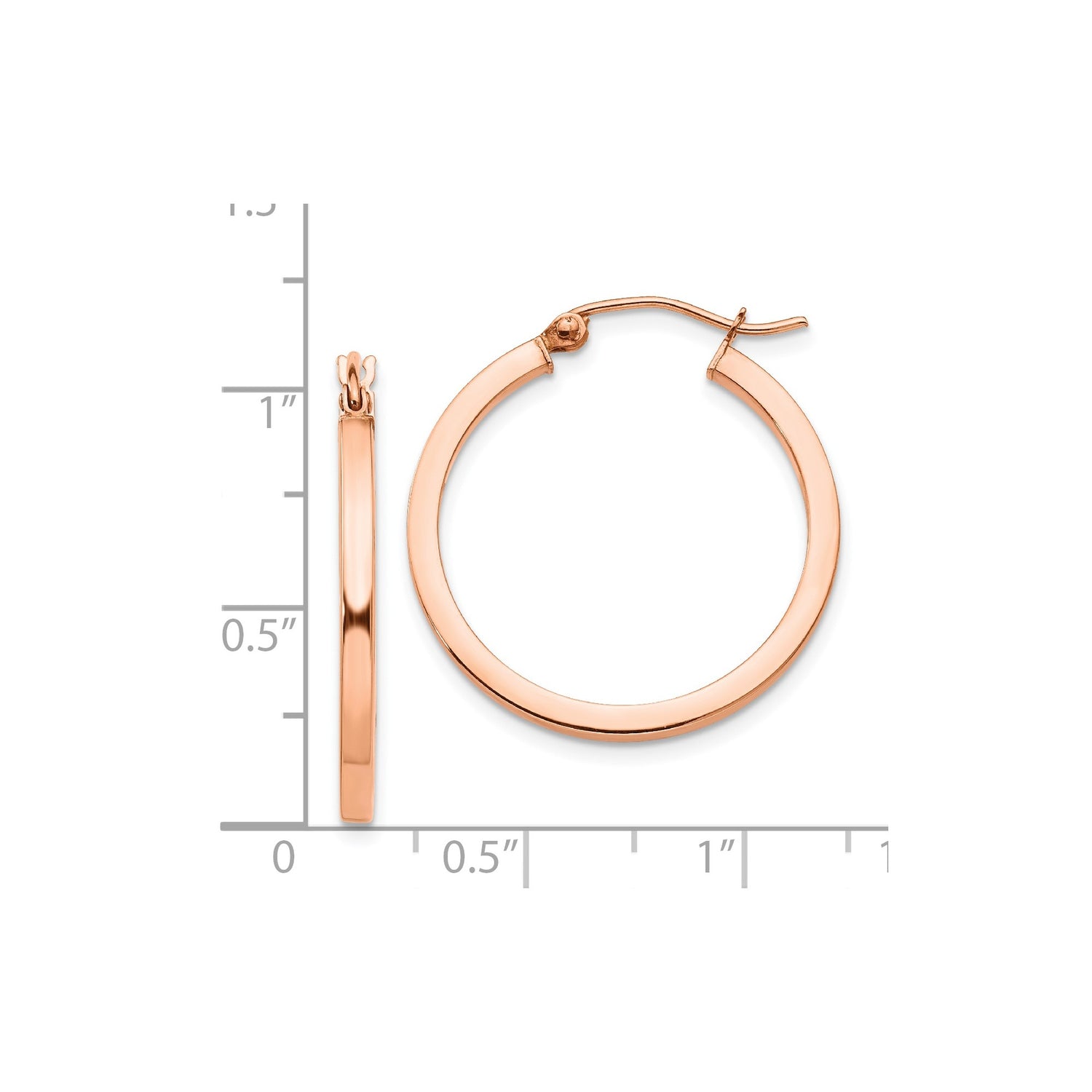 14k Rose Gold Hoop Earrings, Polished Round Lightweight Minimalist Design for Women