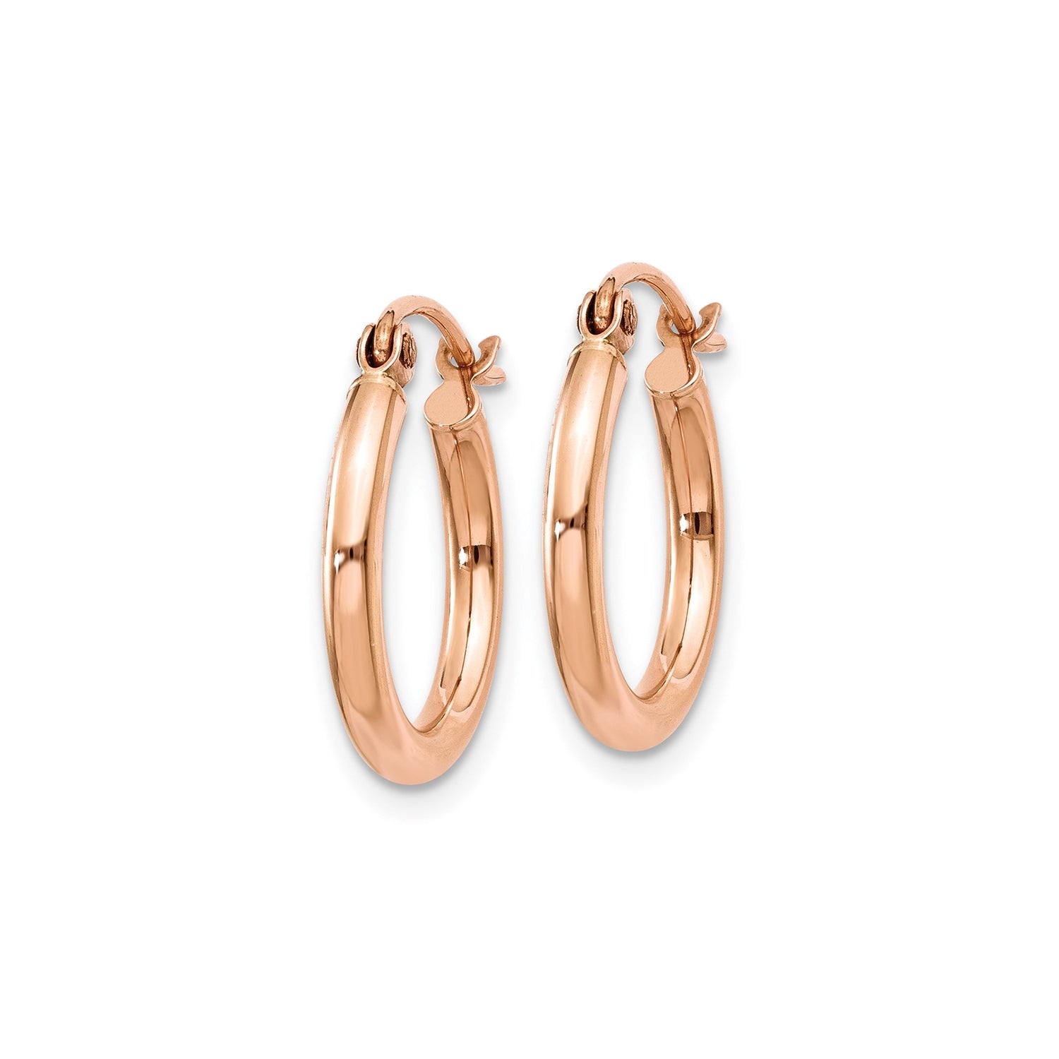14k Rose Gold Hoop Earrings, Smooth Finish Medium Hoops with Latch Back, Lightweight Everyday Jewelry
