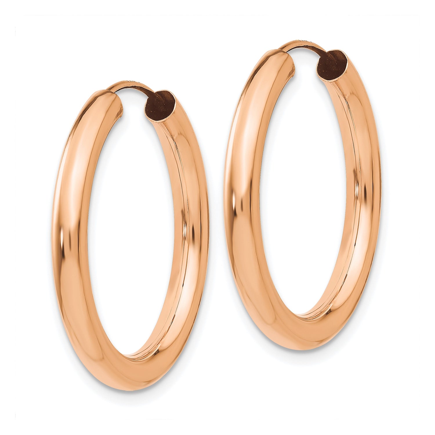 14k Rose Gold Hoop Earrings, Smooth Polished Finish, Lightweight Classic Rounded Design