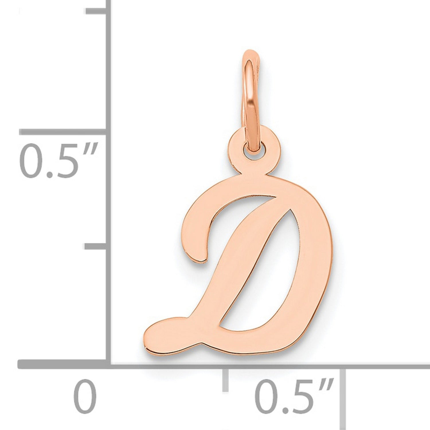 14k Rose Gold Script Initial D Pendant, Polished Cursive Letter Charm for Women