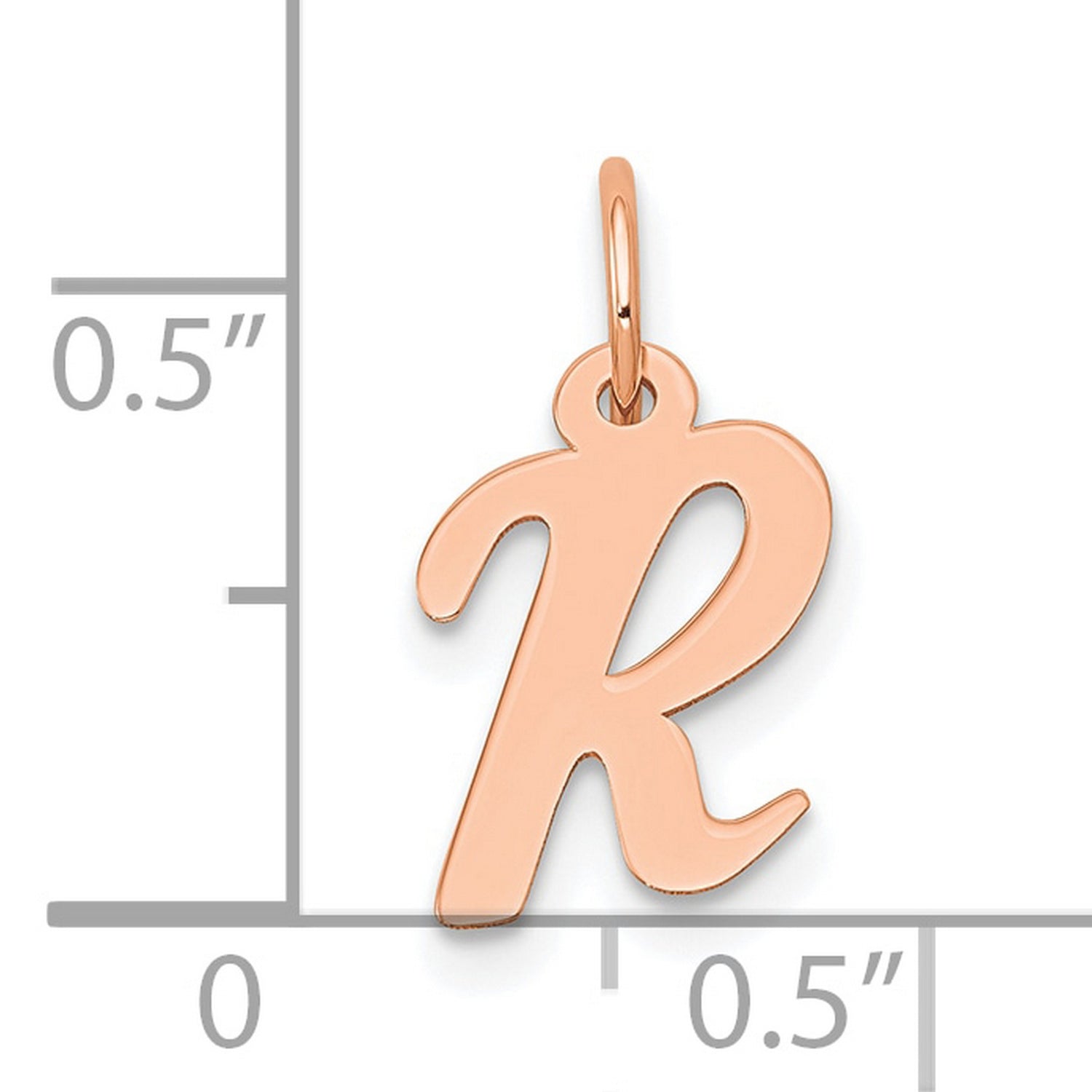 14k Rose Gold Script Letter R Pendant, Dainty Alphabet Charm for Women and Unisex Wear