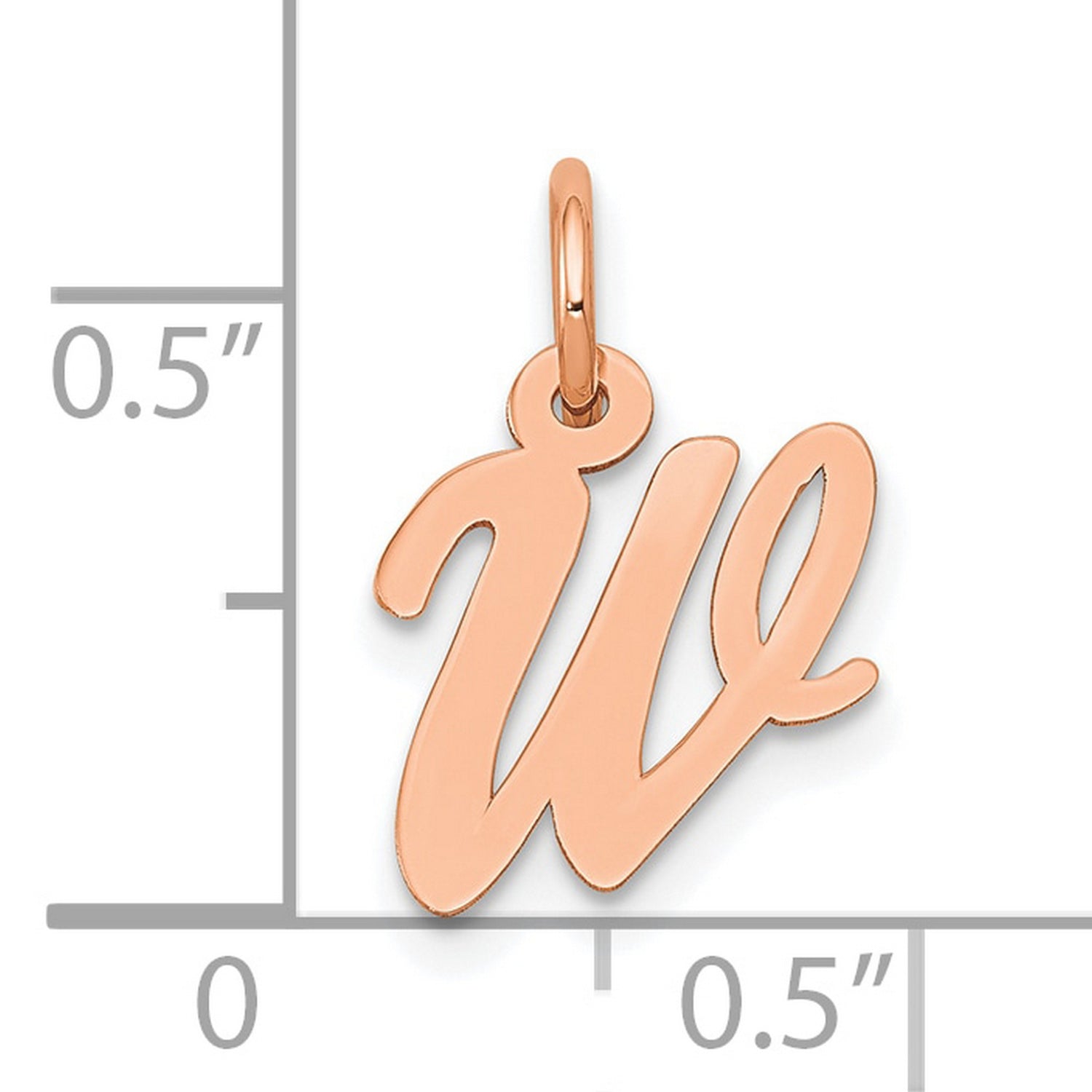 14k Rose Gold Script W Pendant Charm, Polished Cursive Initial Jewelry for Women