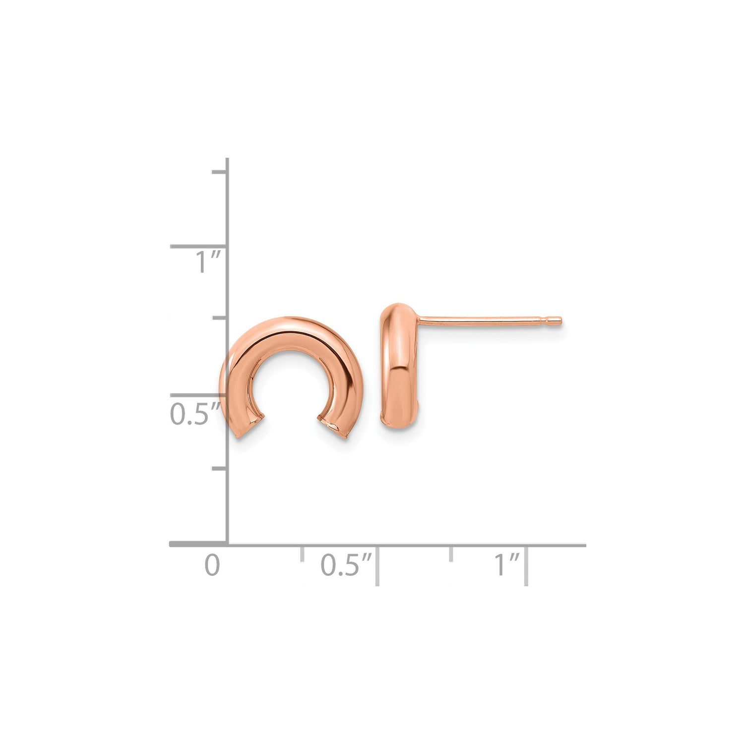 14k Rose Gold Stud Earrings, Open Crescent Hoop Design, Polished Minimalist Style