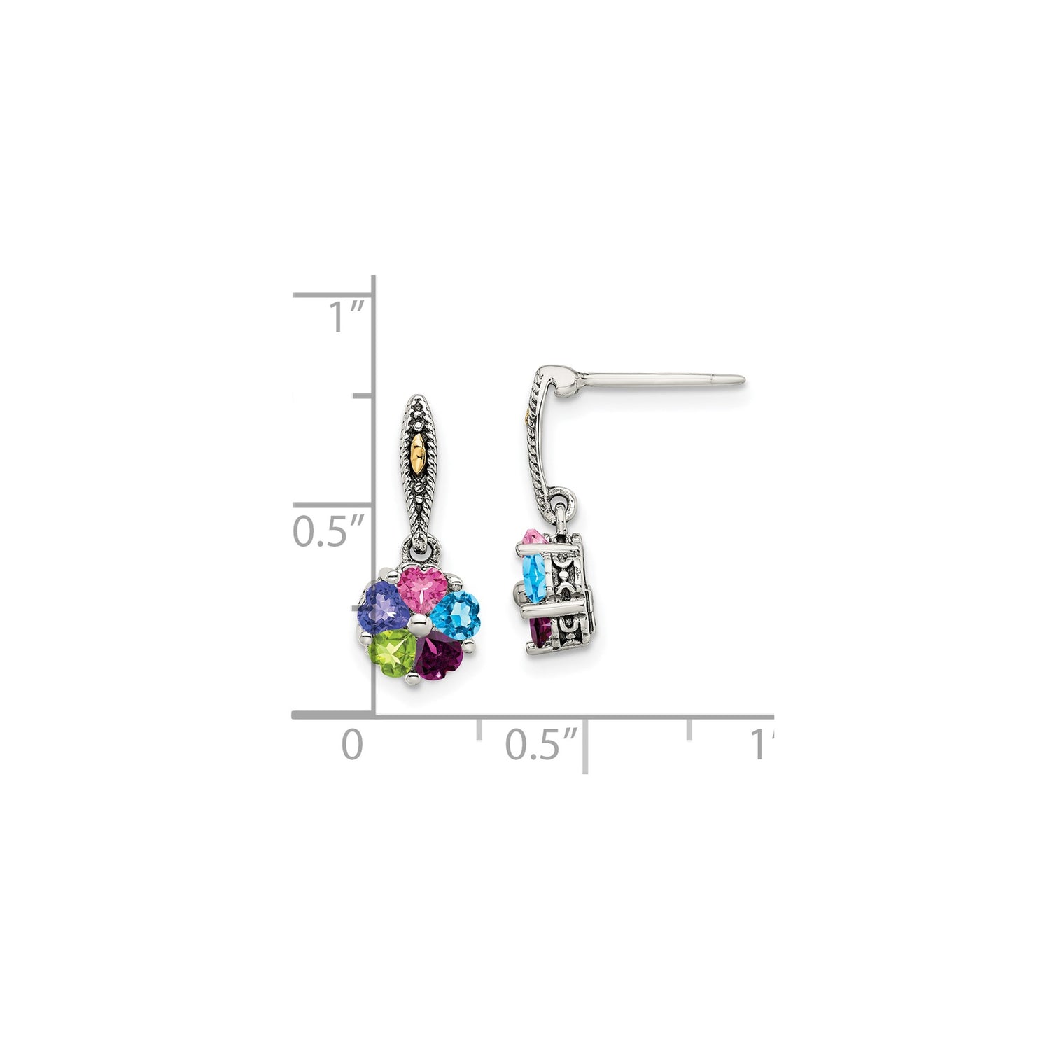 14k Two-Tone Gold Dangle Earrings with Multi-Color Gemstones, Floral Filigree Design