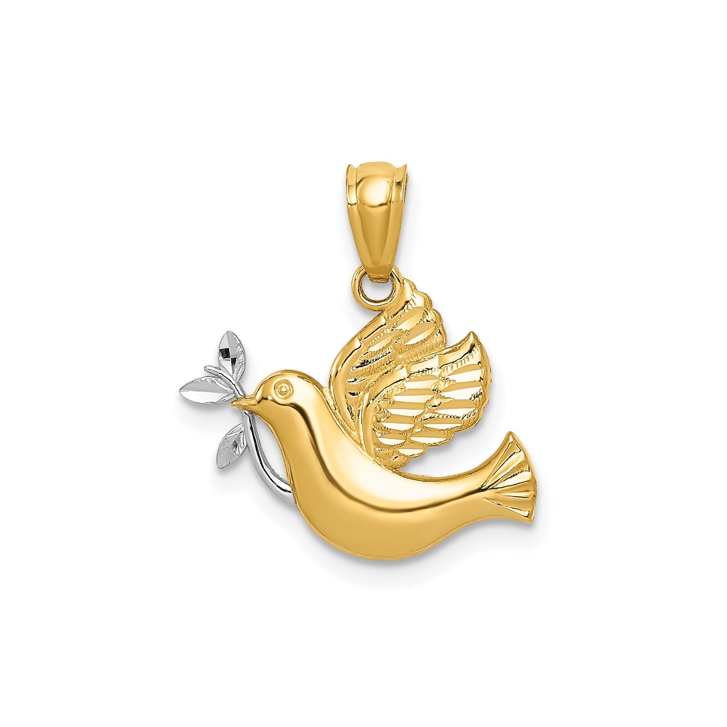 14k Yellow Gold Multi-Tone Dove Pendant with Olive Branch, Christian Faith Jewelry for Women